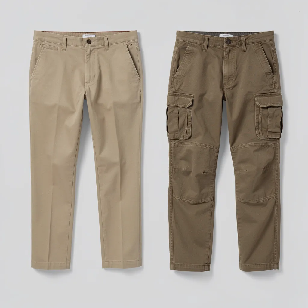 - Брюки чинос/полевые брюки (Chinos/Field Pants): Брюки цвета хаки — основа основ. Прямого или слегка зауженного кроя, с аккуратными карманами.