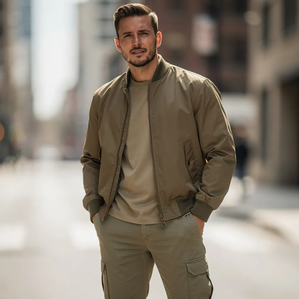 - Куртка-бомбер (Bomber Jacket): Символ стиля. Модель MA-1 (нейлоновая, оранжевая подкладка) или более ранняя G-1/A-2 (кожаная). Короткая, на резинках, невероятно удобная и универсальная.