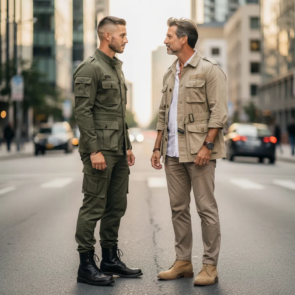 Милитари — это стиль, превративший утилитарную униформу армий мира в язык мужской эстетики, где функциональность, выносливость и лаконичная строгость возведены в абсолют. Это не романтизация войны, а признание безупречного дизайна, рожденного суровой необходимостью. В милитари нет места излишествам — каждый шов, карман и застежка здесь существуют для четкой цели. Это стиль, который говорит не о бунте, а о порядке, не о эмоциях, а о выверенном действии, наделяя своего носителя аурой собранности, надежности и скрытой силы.