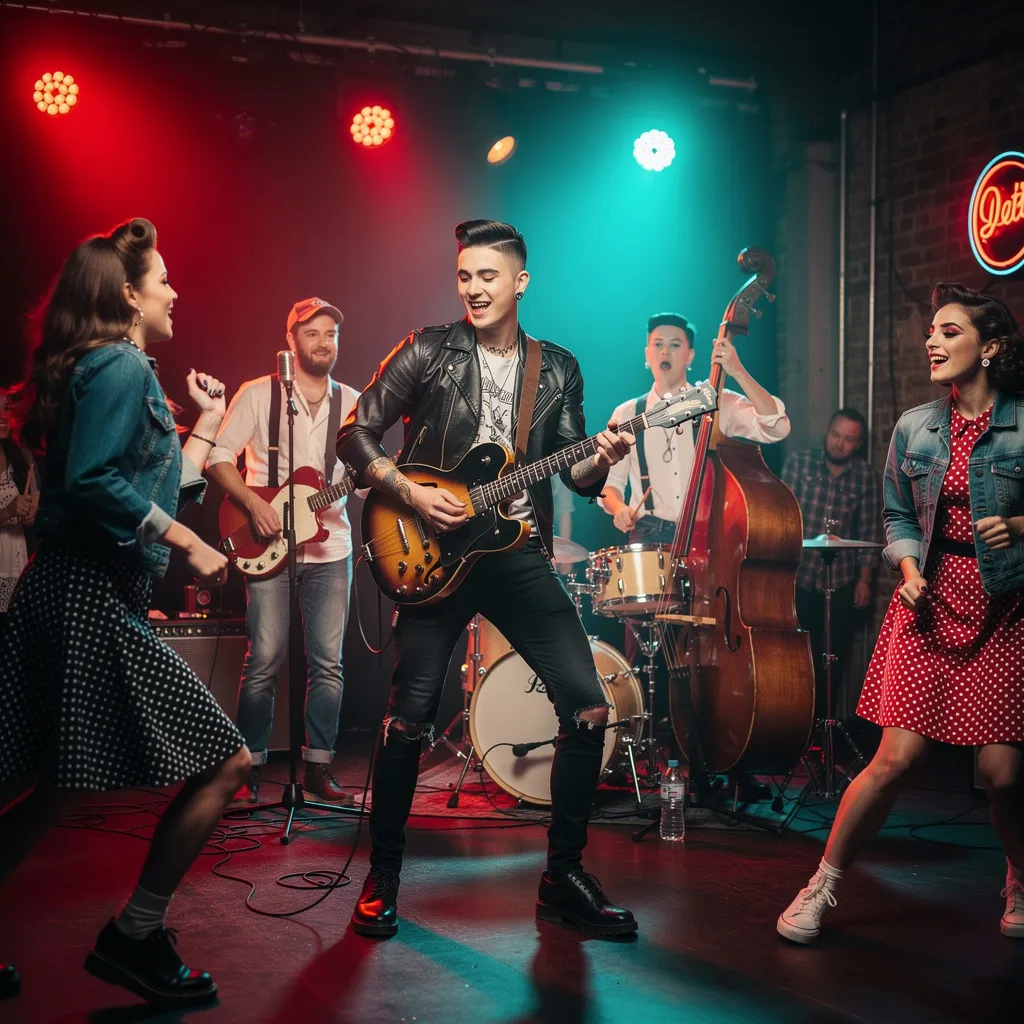 - 1970-1980-е: Возрождение. Волна ностальгии по 50-м (фильм «Американские граффити», группа The Stray Cats) вызывает глобальное возрождение и синтез стилей. Появляются психобилли (Psychobilly) — агрессивный, панковский пересмотр рокабилли (The Cramps, The Meteors).
