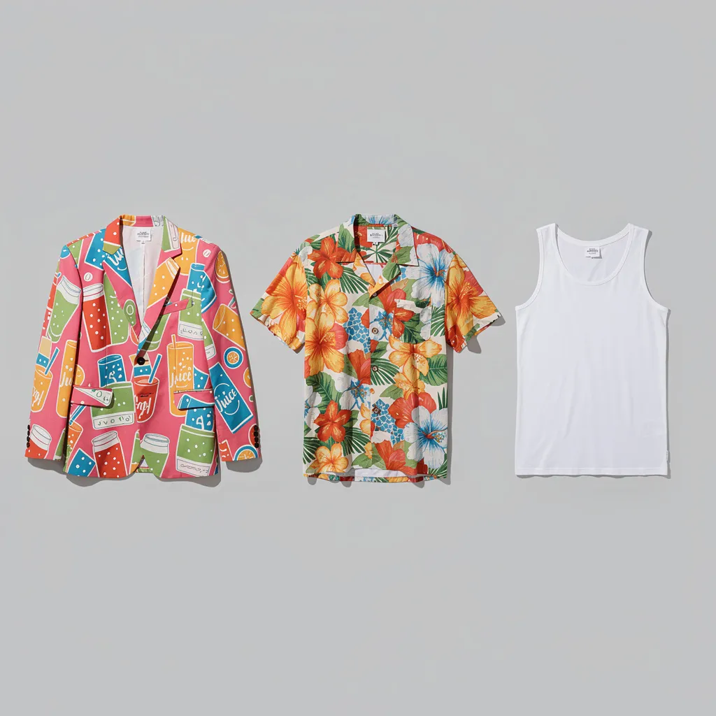 - Гавайская рубашка (Hawaiian/Aloha Shirt): Яркая, с тропическими принтами — обязательный элемент летнего гардероба рокабилли.