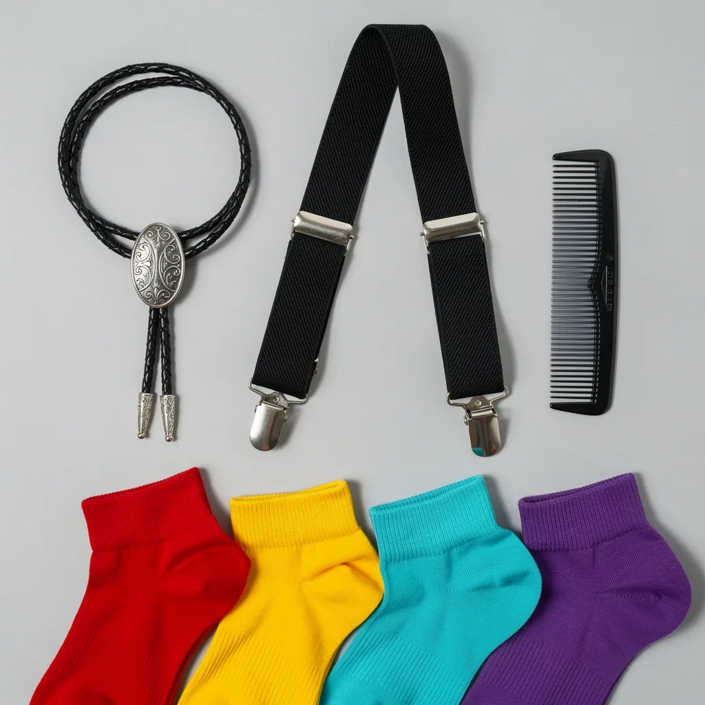 - Подтяжки (Braces): Яркие, контрастные, носились на виду.