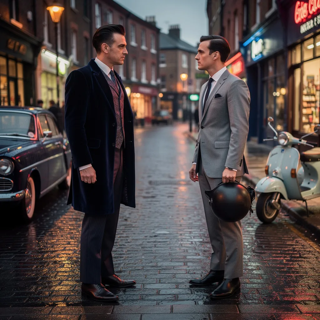 - Фетишизм деталей и ухода. Безупречная чистота, начищенные до зеркального блеска ботинки, идеальная укладка — это был ритуал. Ухоженность становилась оружием и знаком отличия от «неотесанных» сверстников.