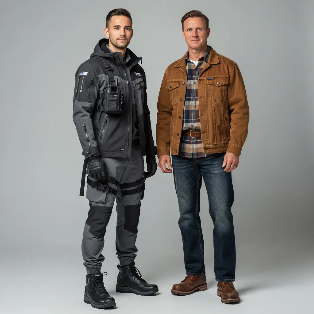 - 2000-е — настоящее время: Глобальный тренд и люксовизация. Workwear становится основой стиля «наследственный герцог» (Heritage). Люксовые бренды (Visvim, Kapital, Engineered Garments) переосмысляют утилитарные формы с помощью дорогих материалов. Возникает Techwear — футуристичное ответвление, где функциональность обеспечивается современными технологичными тканями.