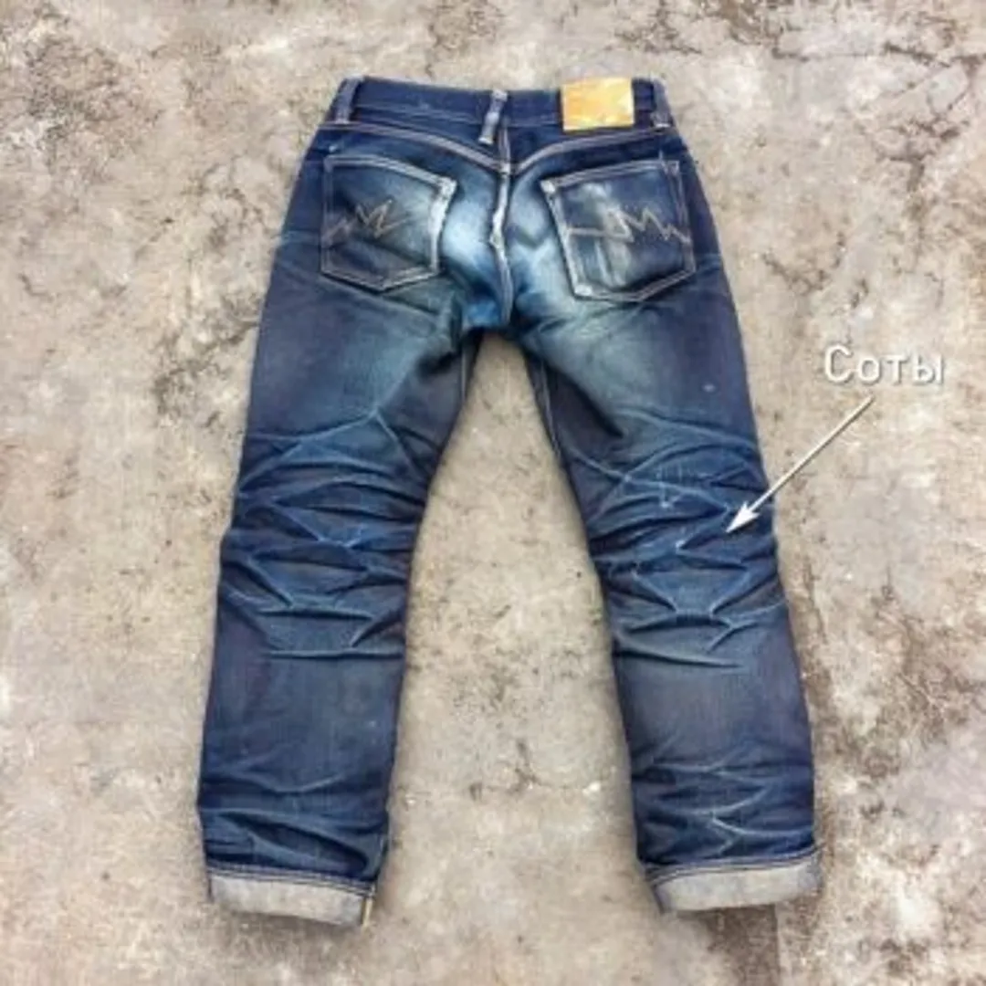 Для подавляющего большинства энтузиастов вся идея необработанной джинсовой ткани заключается в смелых, высококонтрастных оттенках. Это возможно благодаря тому, что избыток красителя в ткани со временем стирается. Если вы постираете все это добро, не успев как следует проутюжить джинсы, красивые «усы и соты» просто не появятся. Известный факт.