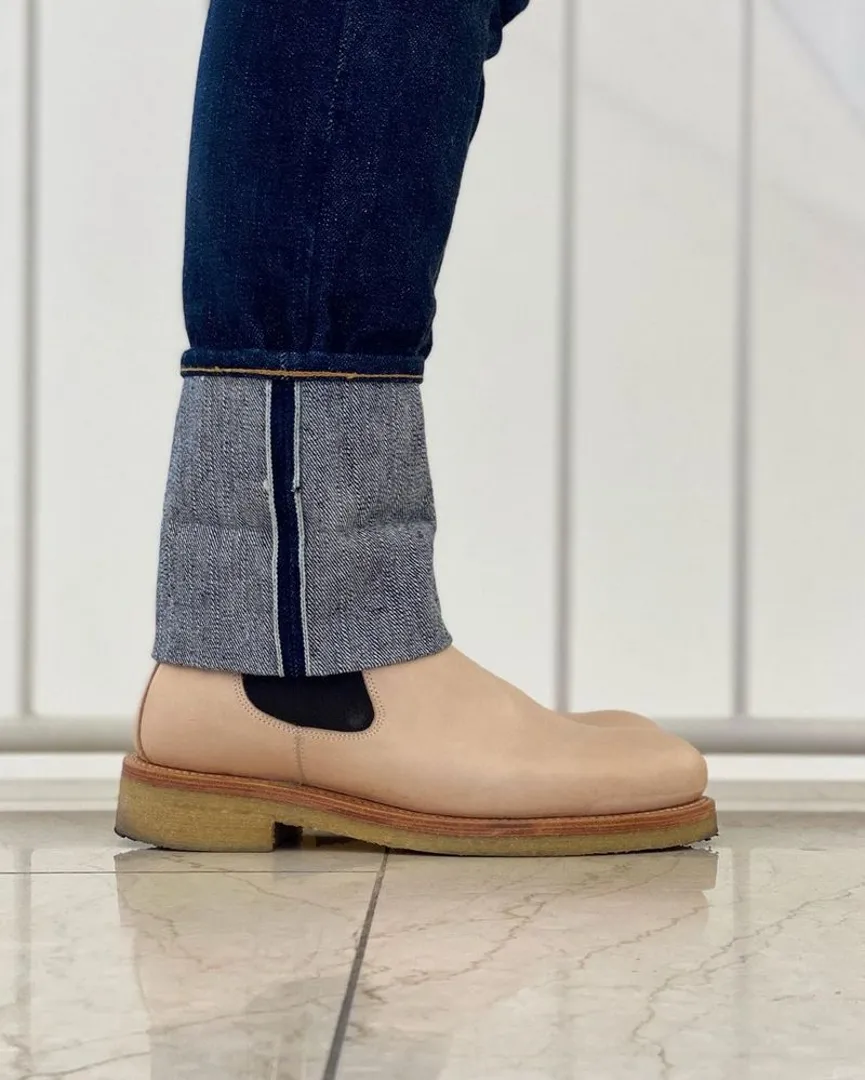 Истинные преимущества необработанного денима заключены в оттенках и крое. Поначалу джинсы жесткие, темные и некомфортные, но со временем они подстраиваются под ноги владельца, становятся более свободными и приобретают уникальный рисунок выцветания в местах износа (при условии, что вы не постираете их слишком рано, но об этом чуть позже). Как правило, это обратная сторона коленей (рисунок «соты»), бедра (рисунок «усы»), карманы, где вы храните бумажник или телефон, и места, где джинсовая ткань облегает вокруг лодыжек.
