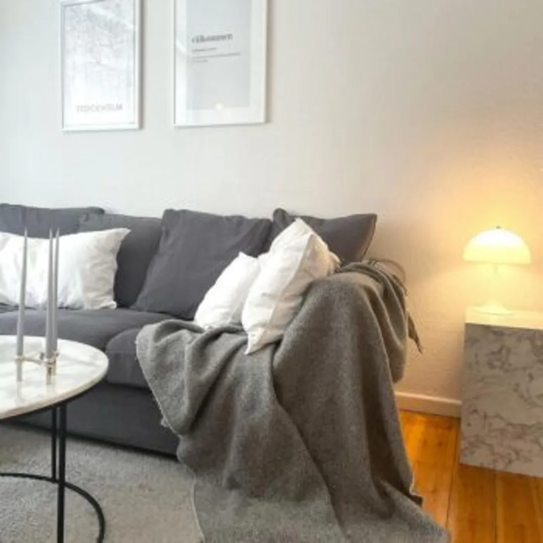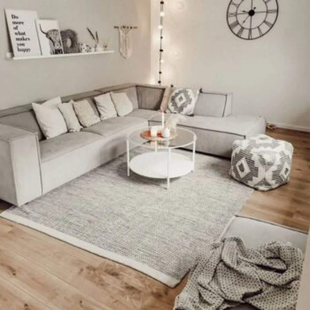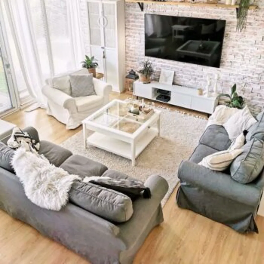 Для создания тонкого, сдержанного настроения, оформите остальную часть гостиной в нейтральных тонах. Белые или светло-серые стены, деревянный пол коричневого цвета, кремовые подушки – все они прекрасно сочетаются с серым диваном и придают помещению легкость и воздушность.