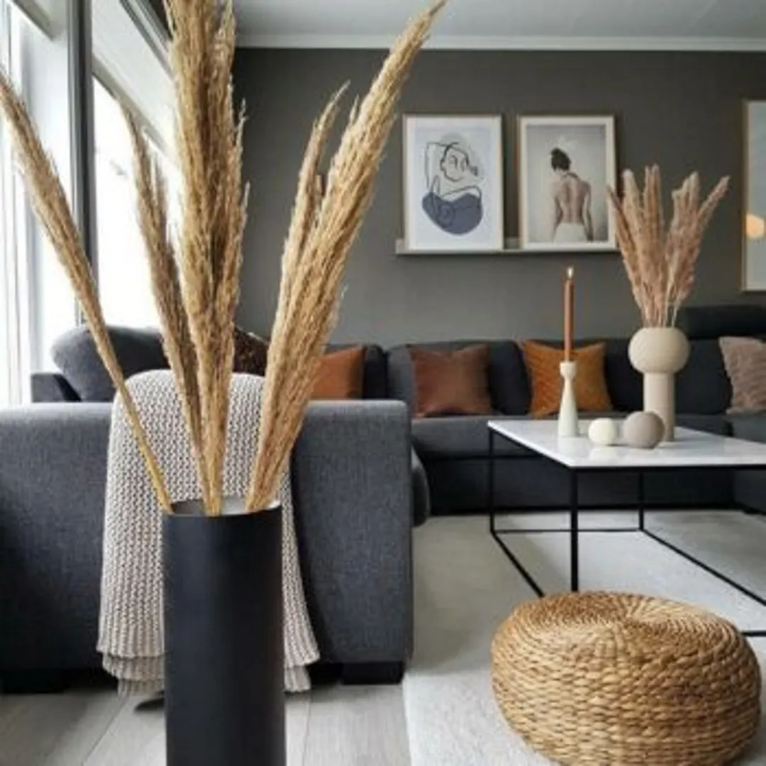 Тем не менее, если вам хочется немного больше красок, существует бесчисленное множество способов привнести их в современную гостиную. Насыщенные оттенки, такие как пурпурный, мшисто-зеленый и королевский синий, хорошо вписываются в оформление этого стиля. Воплотите их в таких элементах, как броские подушки, акцентные стены или плюшевые кресла. Если сомневаетесь, добавьте живые растения – это еще один способ привнести тепло и цвет в любое пространство.
