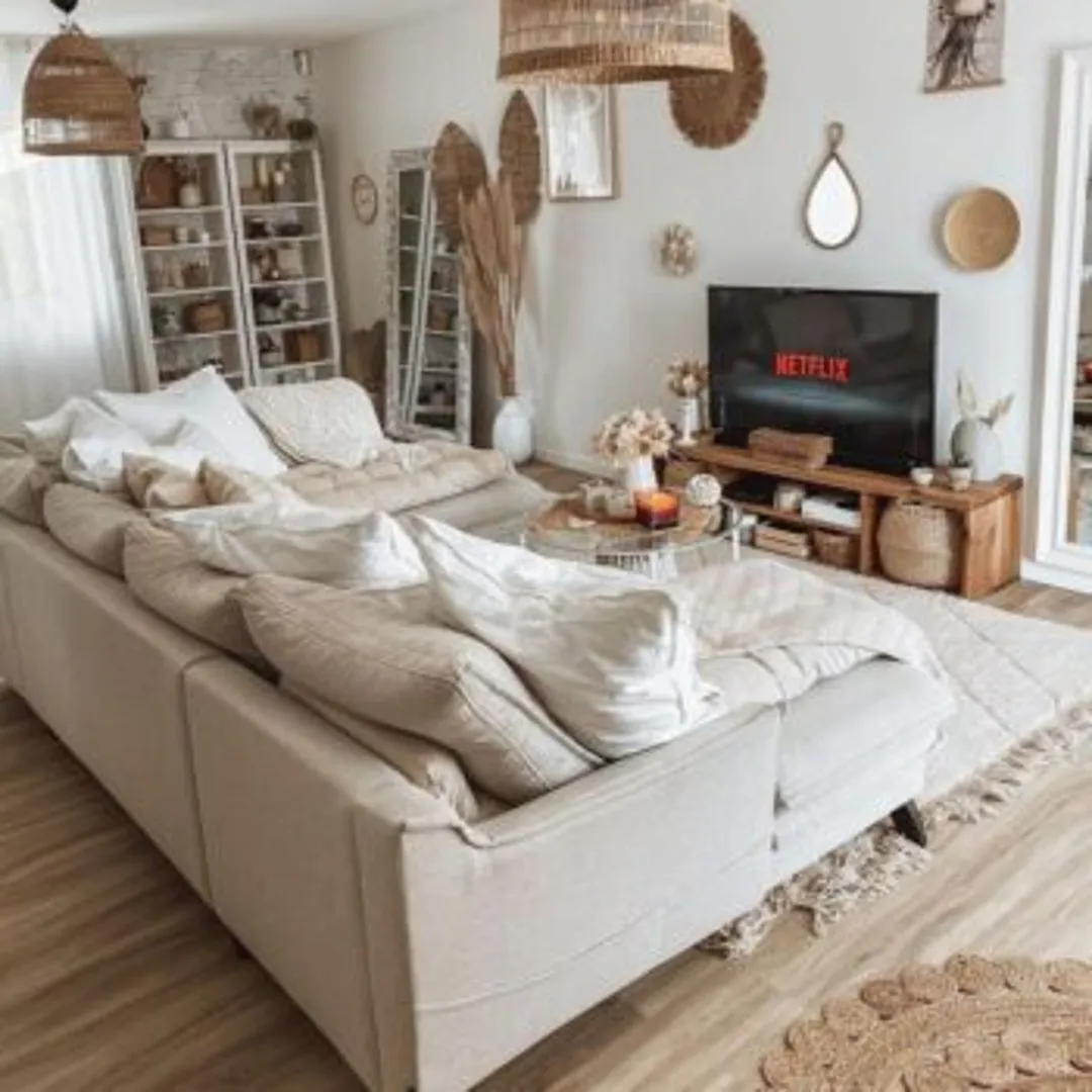 Более темные нейтральные цвета создадут современный, изысканный подход к такому эффекту. Хотите более яркую эстетику? Используйте серый диван, подчеркивающий более яркие цвета и элементы дизайна в стиле фанк. Если интерьер в стиле бохо кажется вам слишком хаотичным – с его акцентом на максимализме и текстуре – выбор серого секционного дивана вместо бархатистого аквамаринового шезлонга станет именно тем вариантом, что поможет его смягчить.