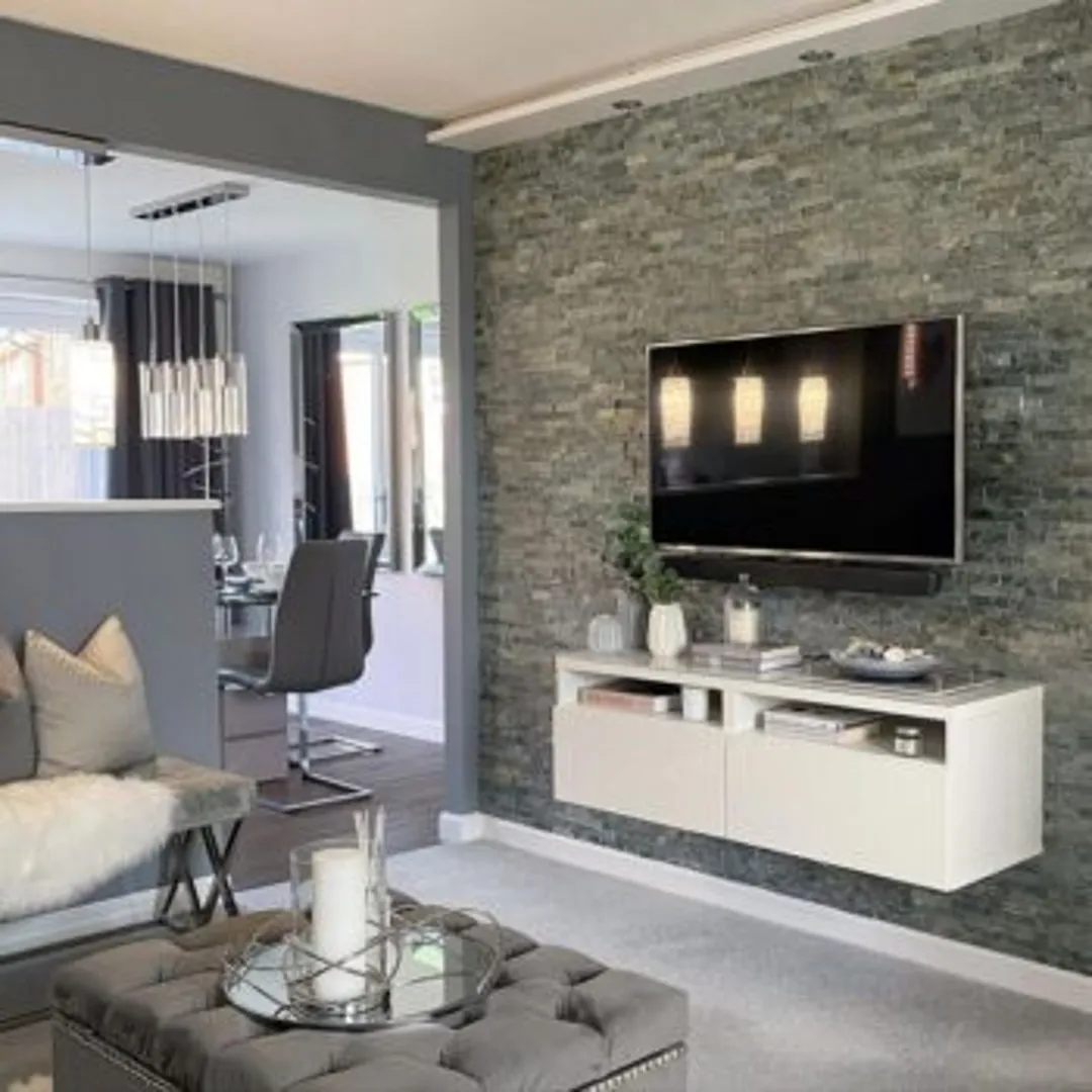 Независимо от того, в каком стиле оформлена ваша гостиная – в современном, деревенском или фермерском, серый камин придаст ей индивидуальность и задаст тон всему помещению. Например, камин из крупных грубых камней наполнит комнату естественной, приземленной атмосферой. Для уютной атмосферы бревенчатого домика используйте много дерева в отделке стен, пола, мебели и уютный плюшевый диван. Для создания эстетики дзен наполните комнату яркими нейтральными цветами, легкими деревянными светильниками и небольшой армией комнатных растений.