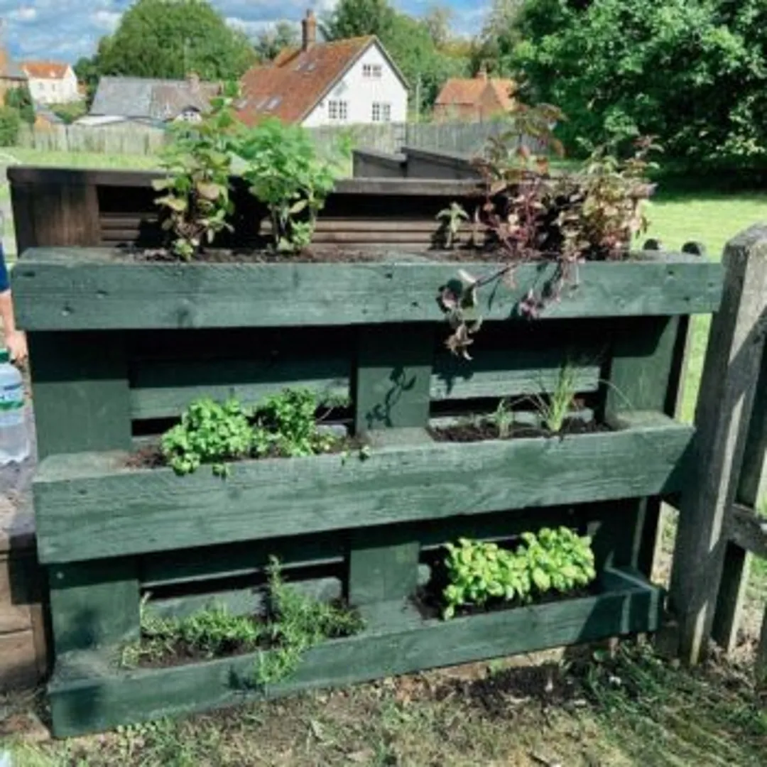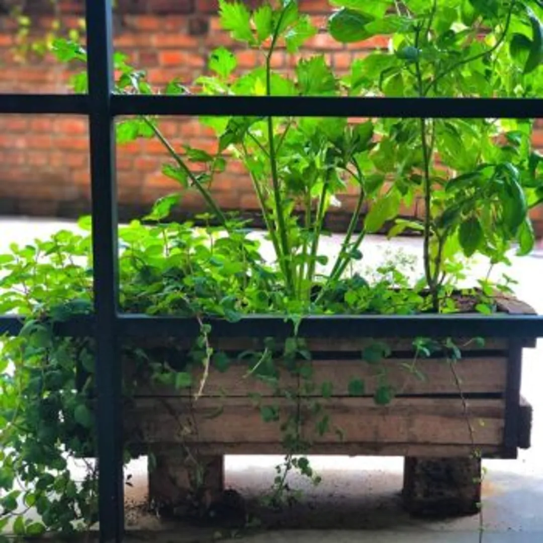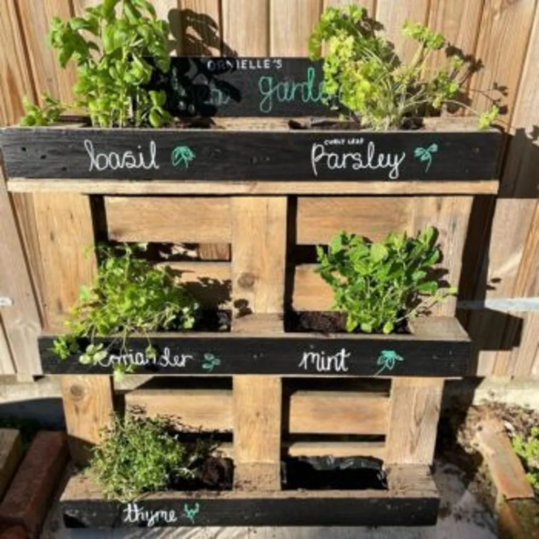 Поставьте поддон слегка набок, прислонив его к стене. Используйте перекрестные балки для посадки мелких трав. Возможно, понадобятся дополнительные деревянные части, чтобы удержать почву от рассыпания. Можно купить корыто или ванну на подставке, наполнить её грунтом и посадить любимые специи.