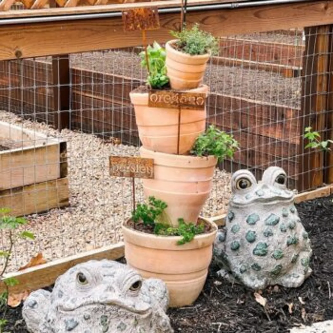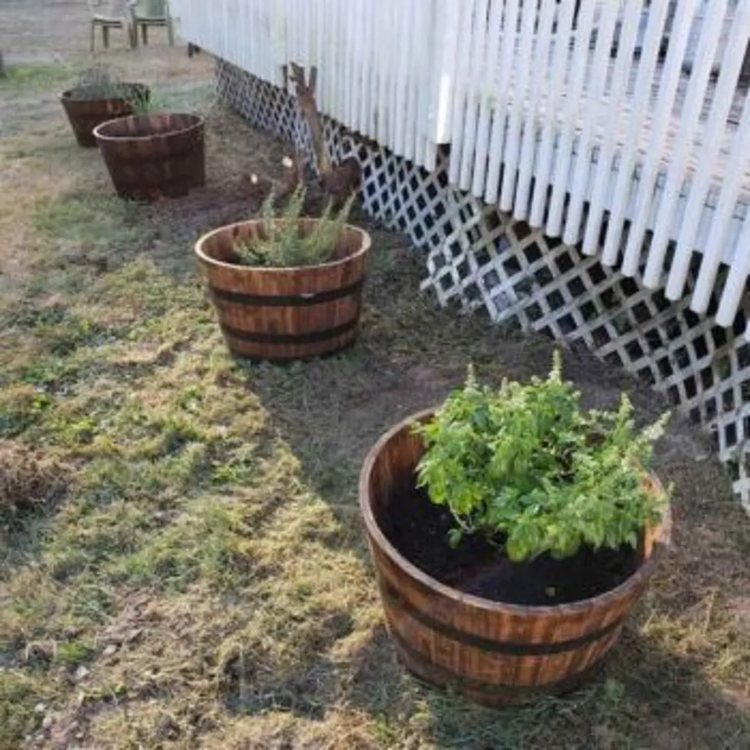 Если сад на заднем дворе уже хорошо украшен, подумайте о том, что можно разнообразить его дизайн разрезанными пополам винными бочками. Засыпьте их землей и посадите внутрь один или два вида трав. Это добавит красок жизни вашему садику и разнообразит стол свежими травами.