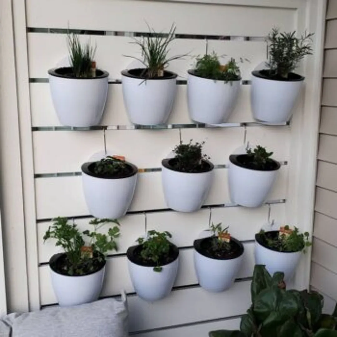 Большинство людей устанавливает поддоны на земле, хотя ничего не стоит закрепить его на стене. Если не хотите сажать травы прямо в поддон, можно повесить на него горшки. На балке поддона можно прикрепить маленькие круглые горшки или длинные прямоугольные ящики с крючками. Подобная конструкция удобна, потому что позволяет легко пересаживать травы не повреждая соседние. Семена можно прорастить в помещении, а как подрастут — переложить в подвесной горшок.