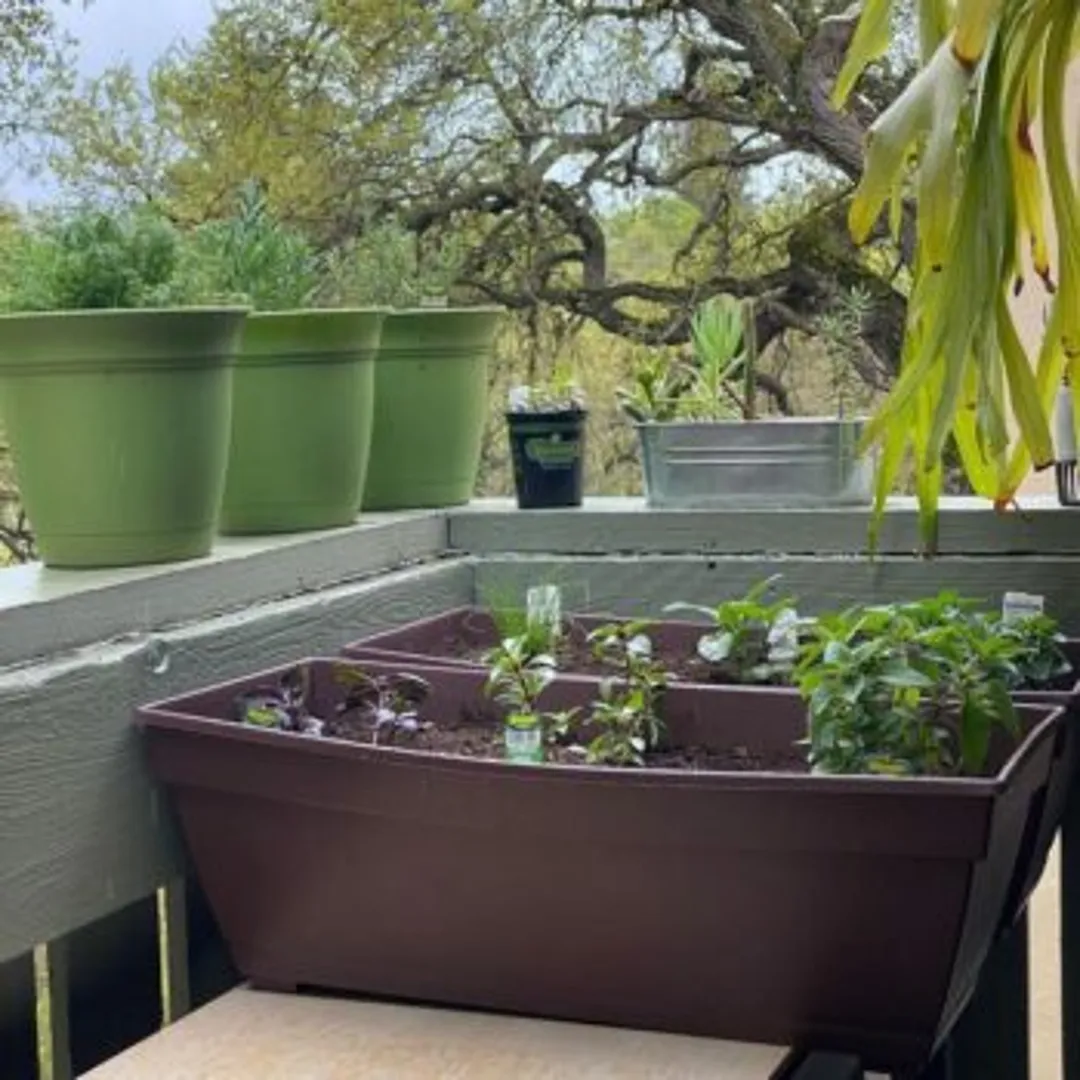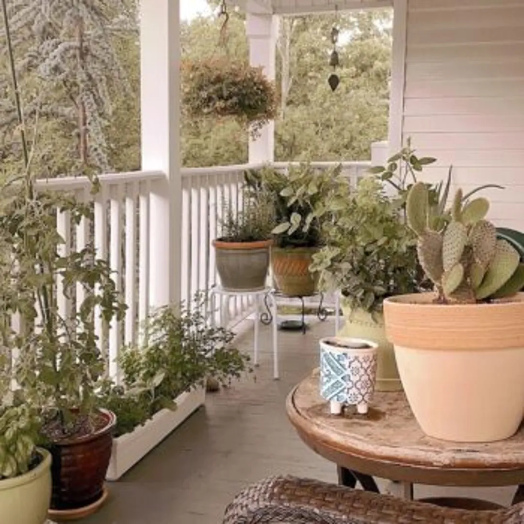 Даже если у вас нет заднего двора, можно сделать рукотворный огородик внутри. Повесить кашпо на перила, например. Сгруппируйте растения в зависимости от того, насколько они солнцелюбивые и какие почвы предпочитают. Если у вас достаточно места на полу, установите стеллаж для нескольких горшочков. Существуют высокие стеллажи для зелени с индивидуальными подставками к каждому горшку.