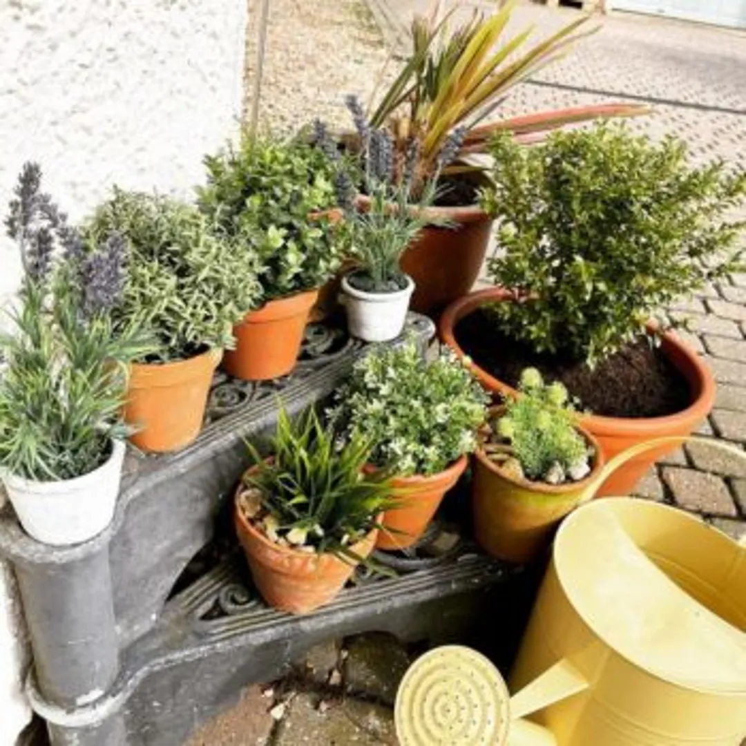 Некоторые горшки расположите на многоуровневых подставках, так они выглядят замечательно. Помните, что мы заботимся не только о красоте, но и о том, чтобы каждое растение получило достаточное количество света. Возможно, придётся расположить всё на одном уровне, даже если это смотрится не так прекрасно.