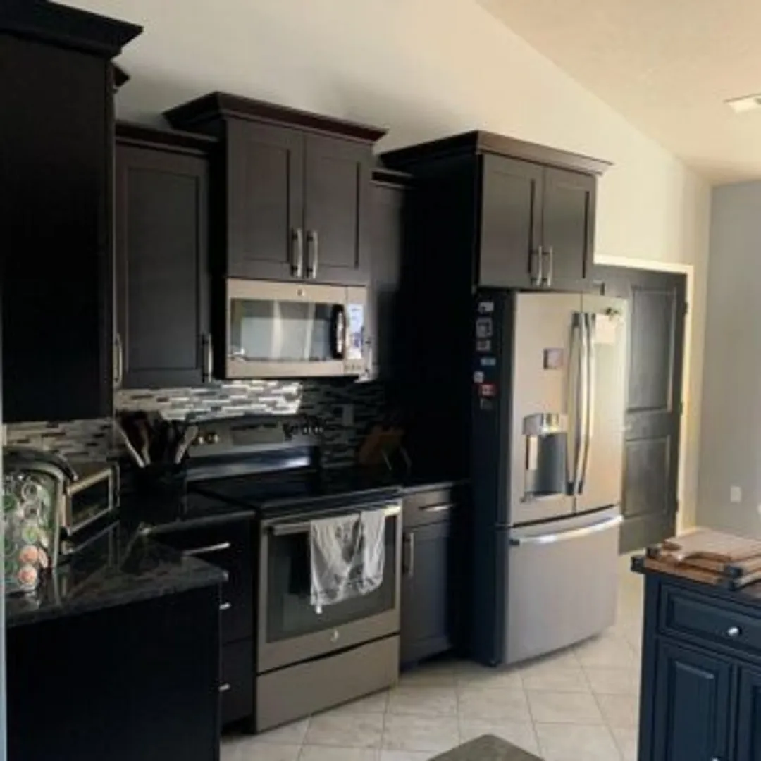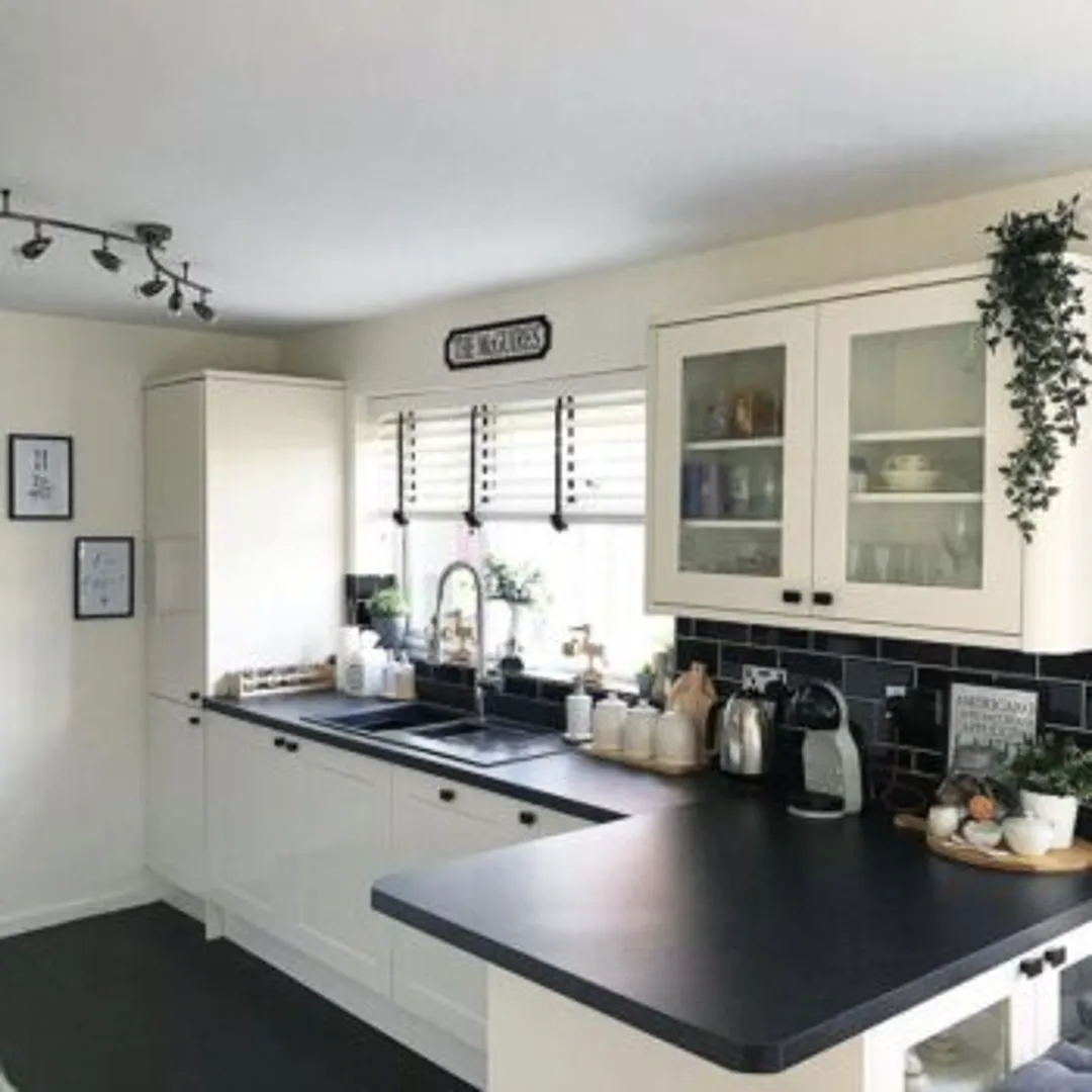 Раньше черный цвет считался заведомо запретным, когда дело касалось покраски кухонных шкафов. Однако, современные примеры доказывают, что черный на кухне может отлично выглядеть. С помощью черных шкафов можно создать баланс между темным и светлым, можно акцентировать этим цветом стены.
