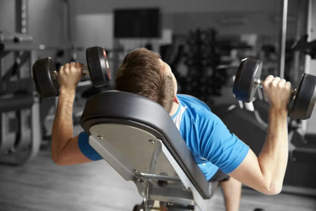 Увеличьте нагрузку на верхнюю часть грудной клетки, наклонив скамейку под углом 45 градусов. Сядьте на скамью, твердо поставив ступни на пол. Возьмите пару гантелей и полностью отклонитесь назад. Поднимите гантели над грудью, удерживая руки прямыми и ладонями, развернутыми от себя. Затем согните руки в локтях, опуская гантели к груди. Сделайте паузу примерно на 2 секунды, а затем снова поднимите их, слегка сведя руки вместе. Повторите необходимое количество раз.