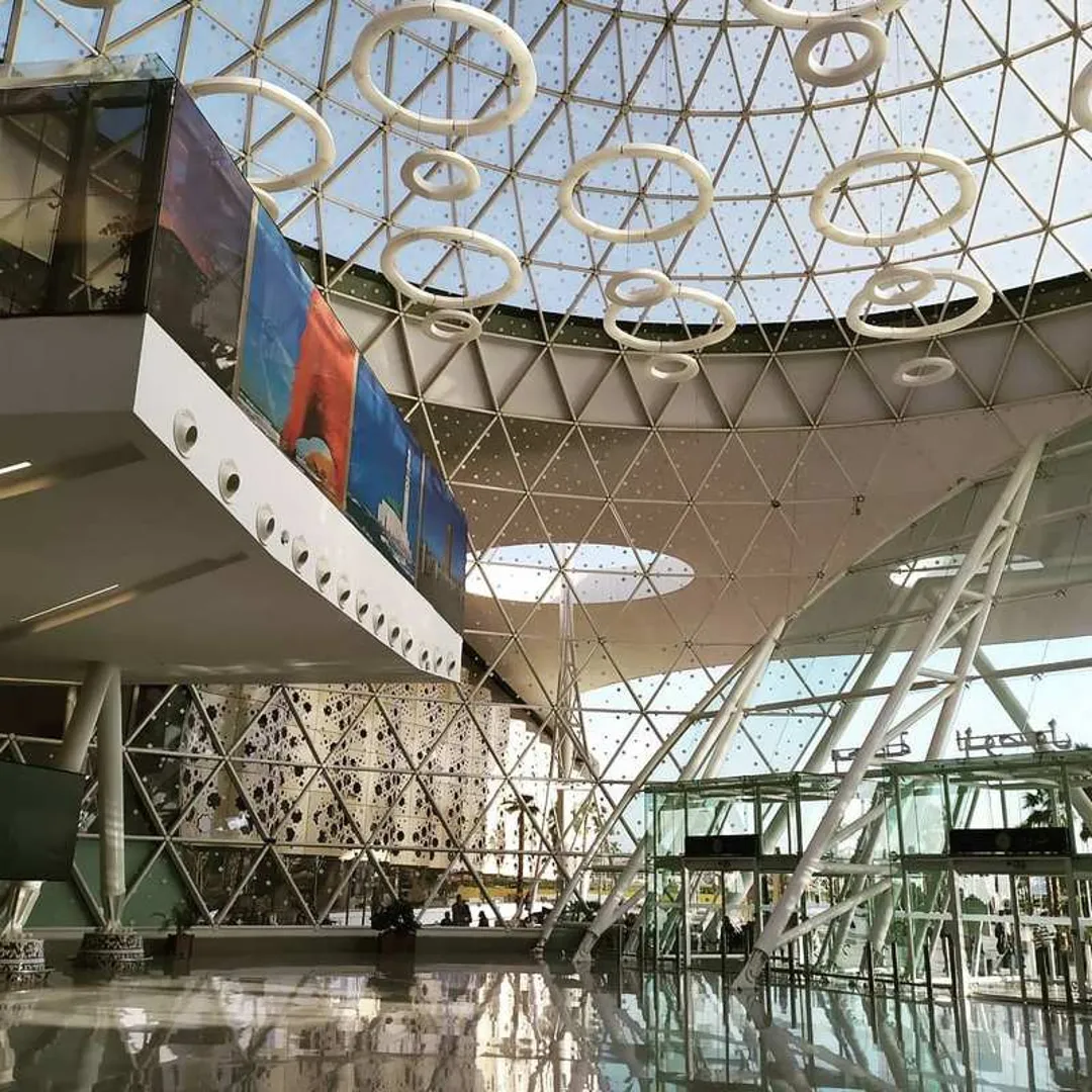 Аэропорт Марракеша, отремонтированный в 2008 году, наполнен марокканским дизайном, цветами и элегантностью, с многочисленными отсылками к исламской культуре и типичными исламскими орнаментами. Интересный факт: это один из самых экологичных аэропортов в мире благодаря большому количеству солнечных батарей, преобразующих палящее африканское солнце в энергию.
