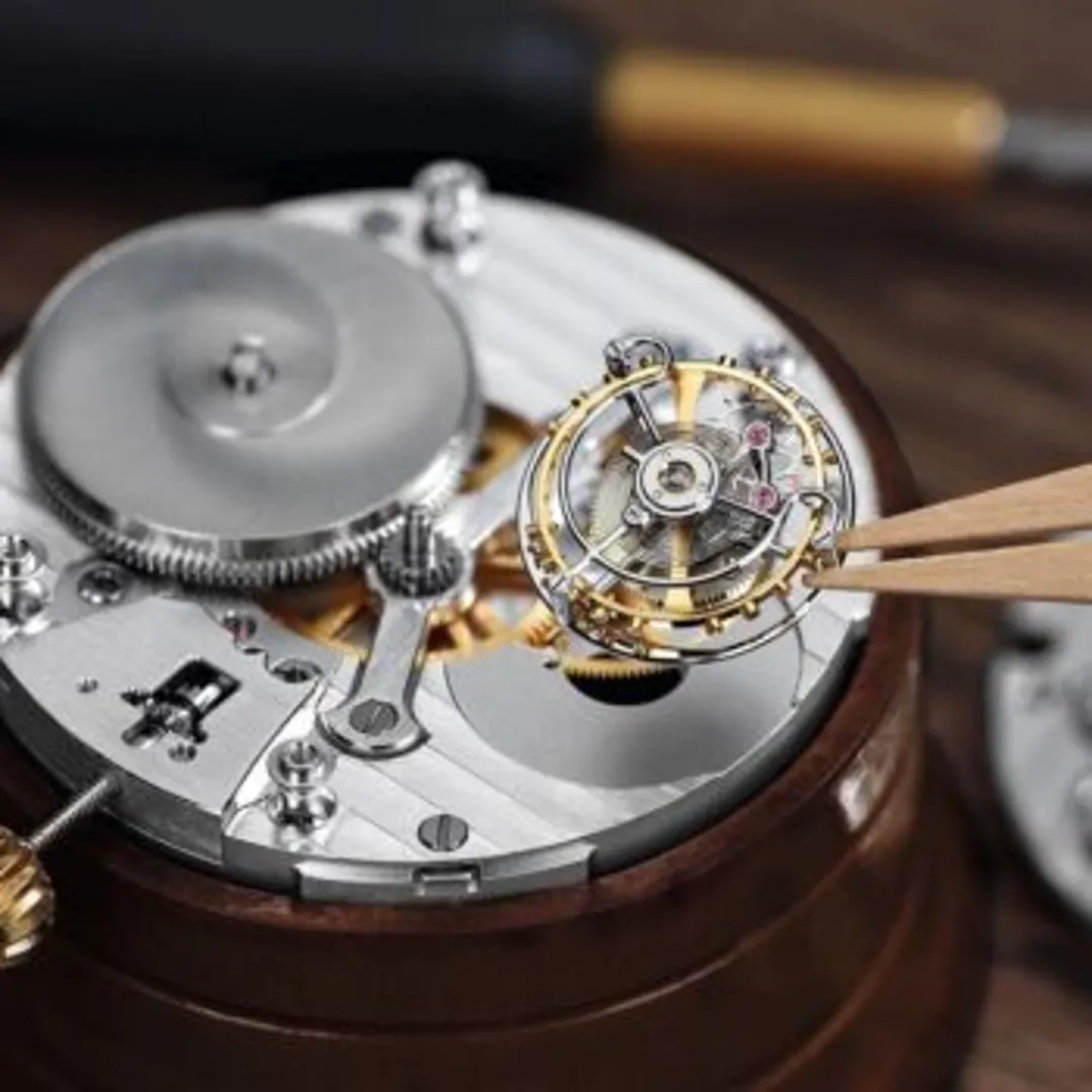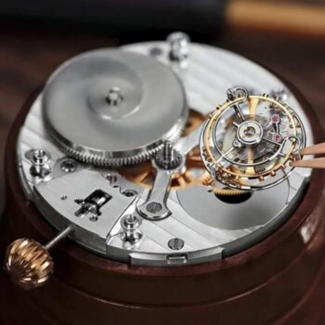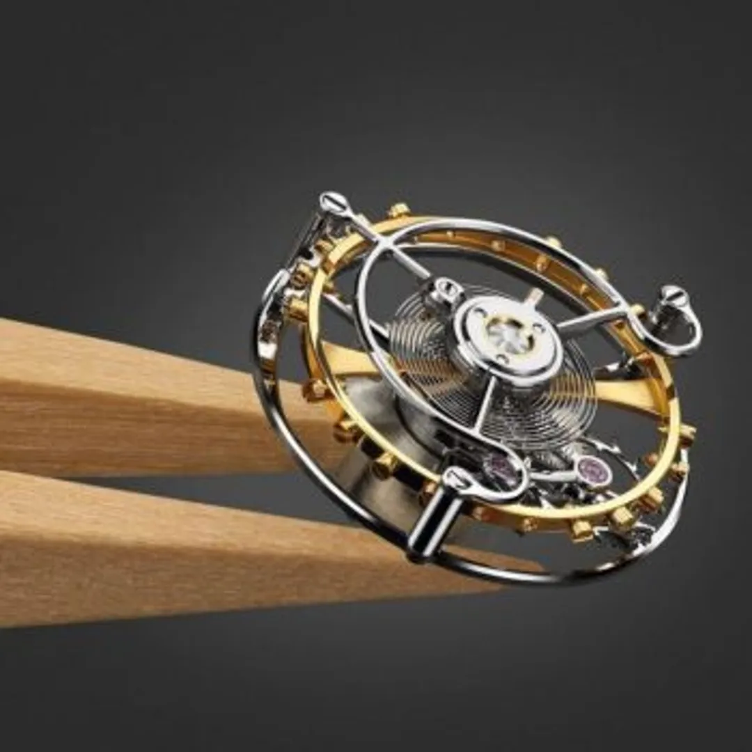 Парящий турбийон, работающий со скоростью 21 600 оборотов в час, дополнен на концах двумя бриллиантами для баланса внутри каретки с автоподзаводом. Как одному из самых хрупких внутренних часовых механизмов, корпус обеспечивает максимальную стабильность, позволяя владельцам беспрепятственно видеть происходящее внутри. Находясь в открытой раме, баланс и спуск равномерно вращаются вокруг своей оси с точностью 360 оборотов в минуту.