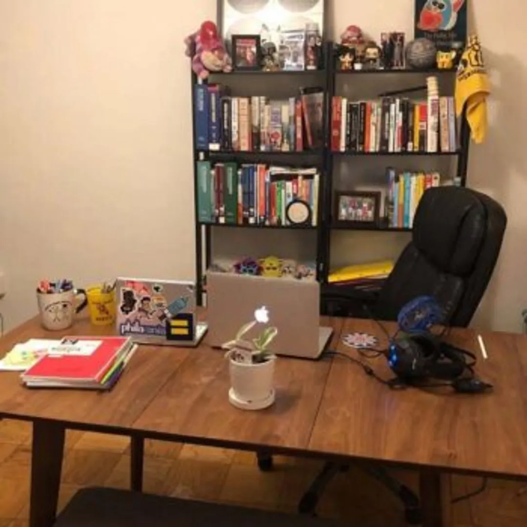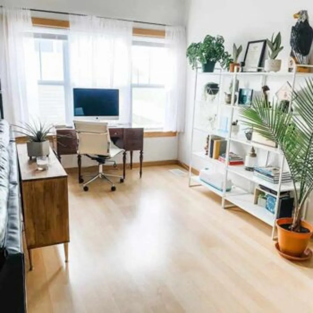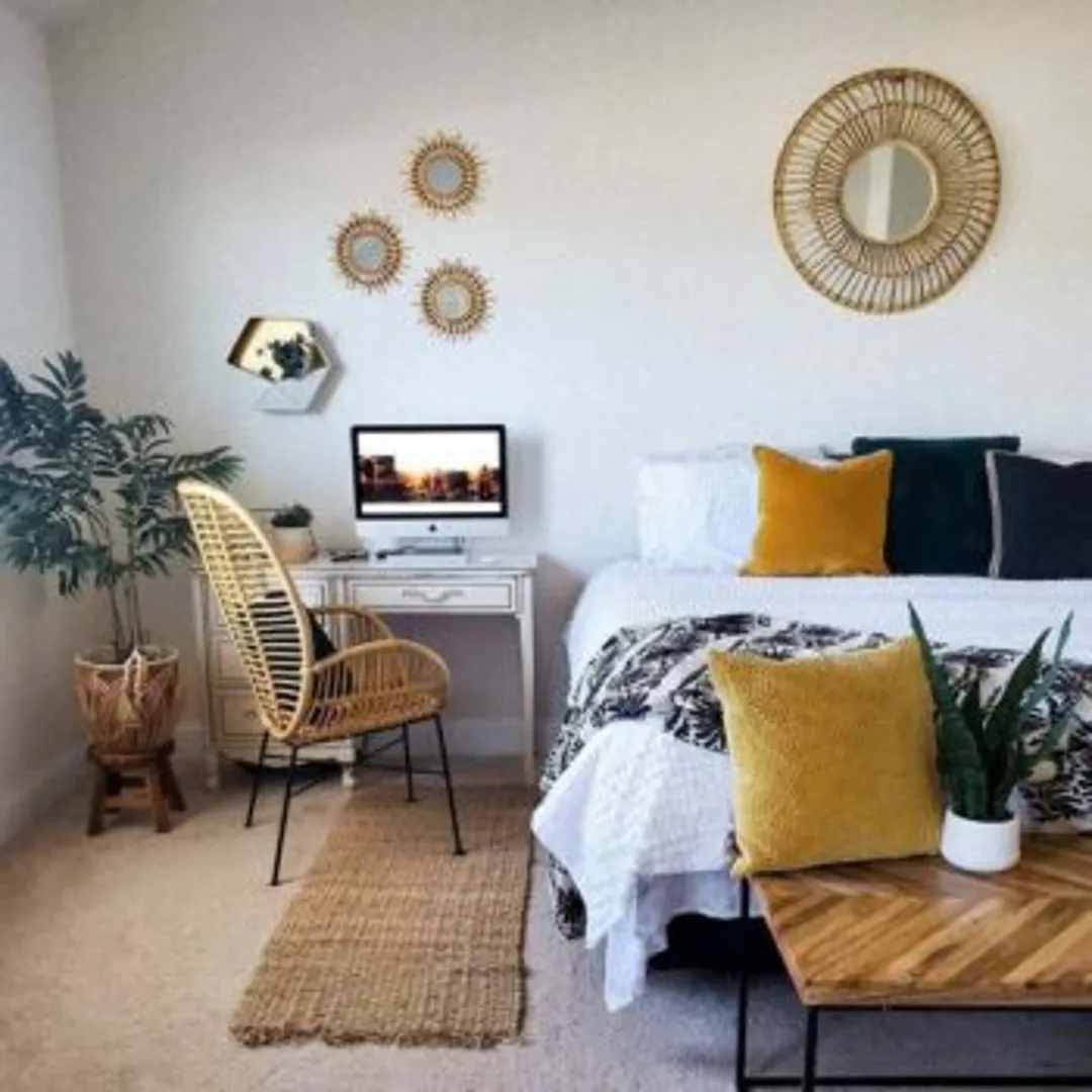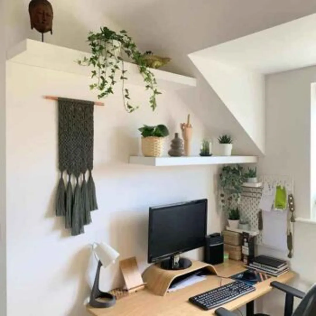 Комнатные растения прекрасно сочетаются с офисным кабинетом, способствуют расслаблению и при этом создают профессиональный вид на фоне видеозвонков. Добавьте несколько декоративных элементов из лозы и макраме для некоторой органической текстуры, по-прежнему считающейся «нейтральной».