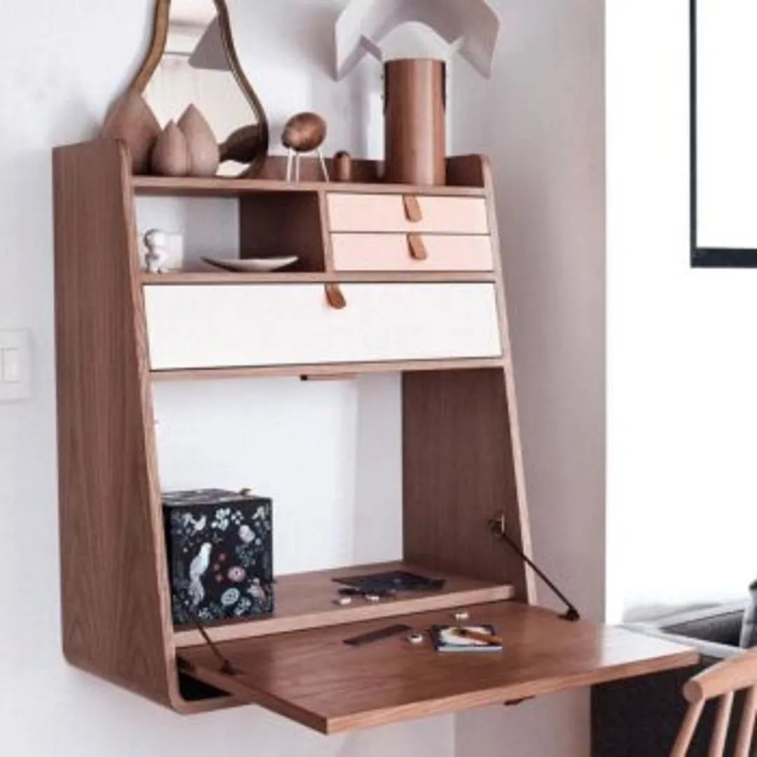 Выбор узкого рабочего стола с настенным модулем сэкономят несколько сантиметров там, где это действительно важно. Установите стеллажи или шкафы над рабочей поверхностью для компактного и легкодоступного хранения, такими же узкими, как и новый стол.