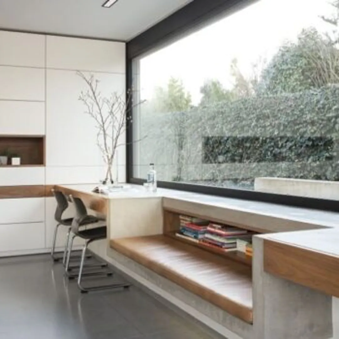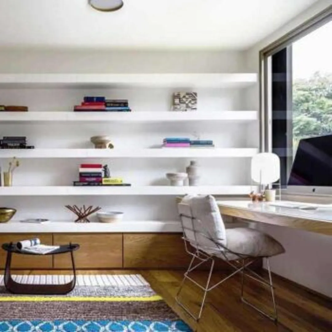 Встроенные столы и полки экономят пространство и при этом выглядят довольно стильно. Чаще всего встречается изящный минималистичный дизайн. Вы легко сможете установить встроенное рабочее место в одном углу или преобразить всю комнату вашего дома.