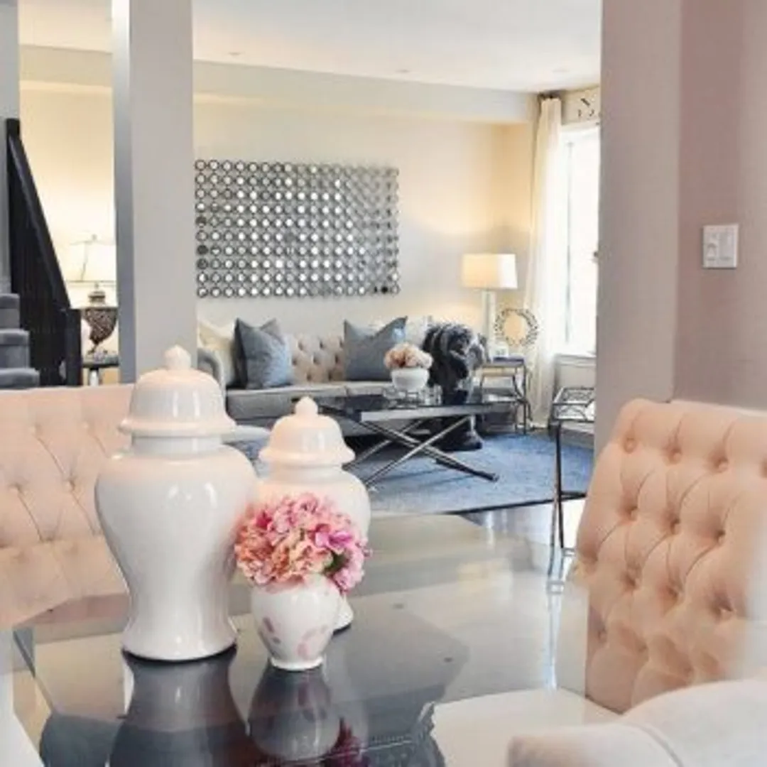 Вам не обязательно добавлять розовый цвет в гостиную с помощью тканей. Розовый диван или кресло с акцентом – очевидный выбор, но есть и другие способы добавить немного розового в комнату. Подумайте о розовом коврике или журнальном столике розового цвета. Вы также можете выбрать люстру, имеющую розовые оттенки или кристаллы для роскошного и элегантного вида.