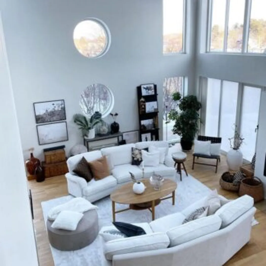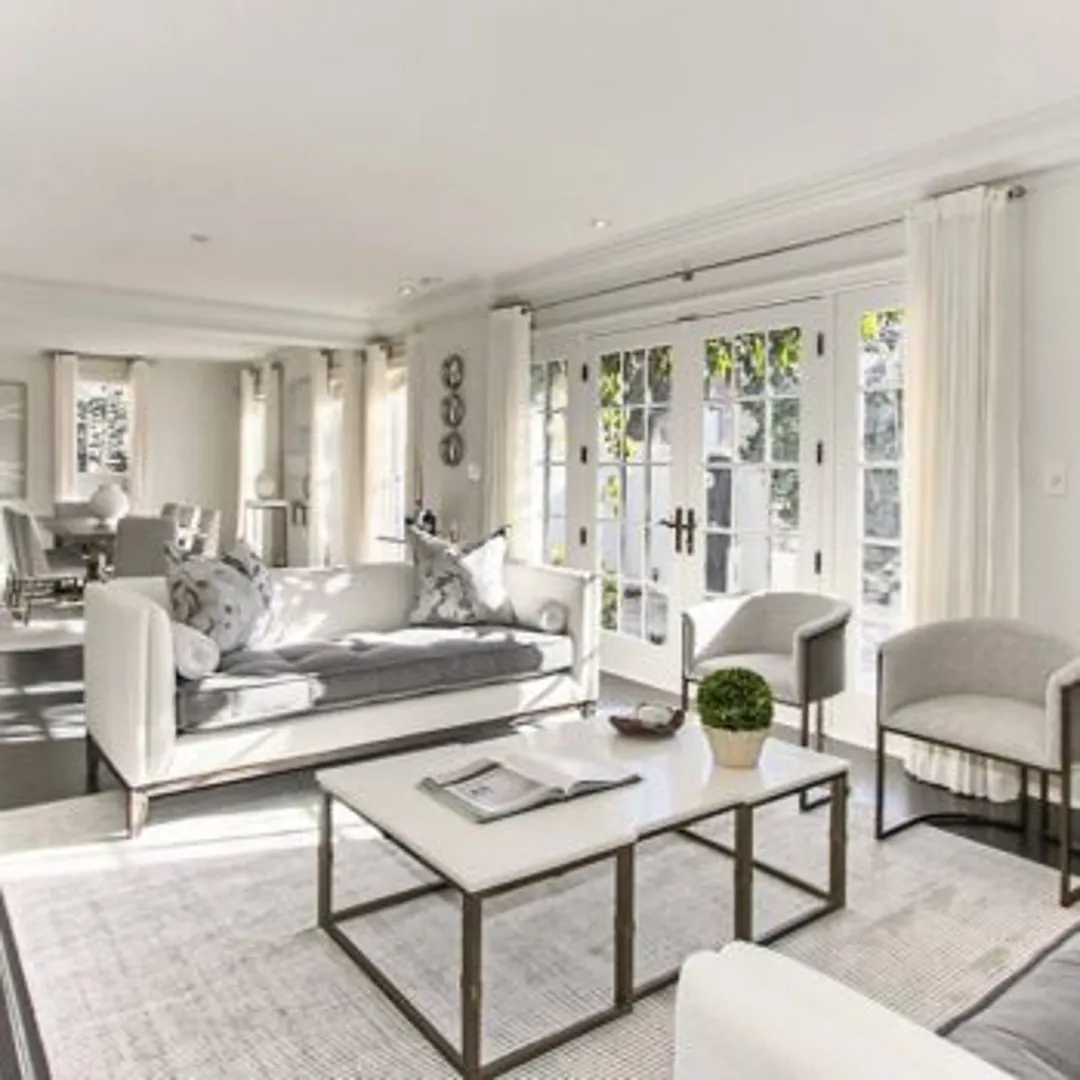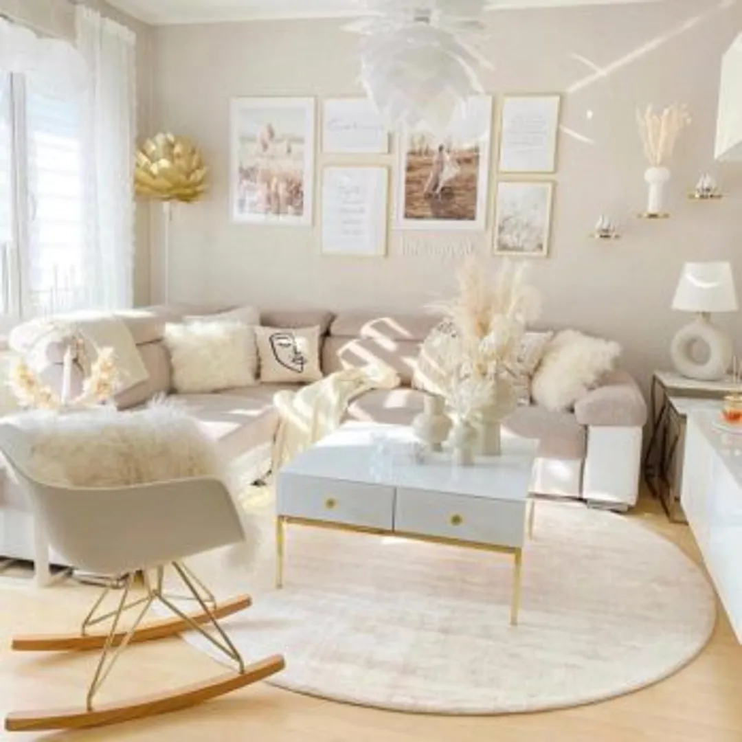 Хотите, чтобы ваша белая гостиная выглядела уютной, жилой и гостеприимной? Тогда следует выбирать диван, с разложенными на нем дополнительными акцентными подушками. У вас также должен быть удобный коврик, связывающий все в комнате воедино и создающий уютное пространство, где люди могут собраться и отдохнуть.