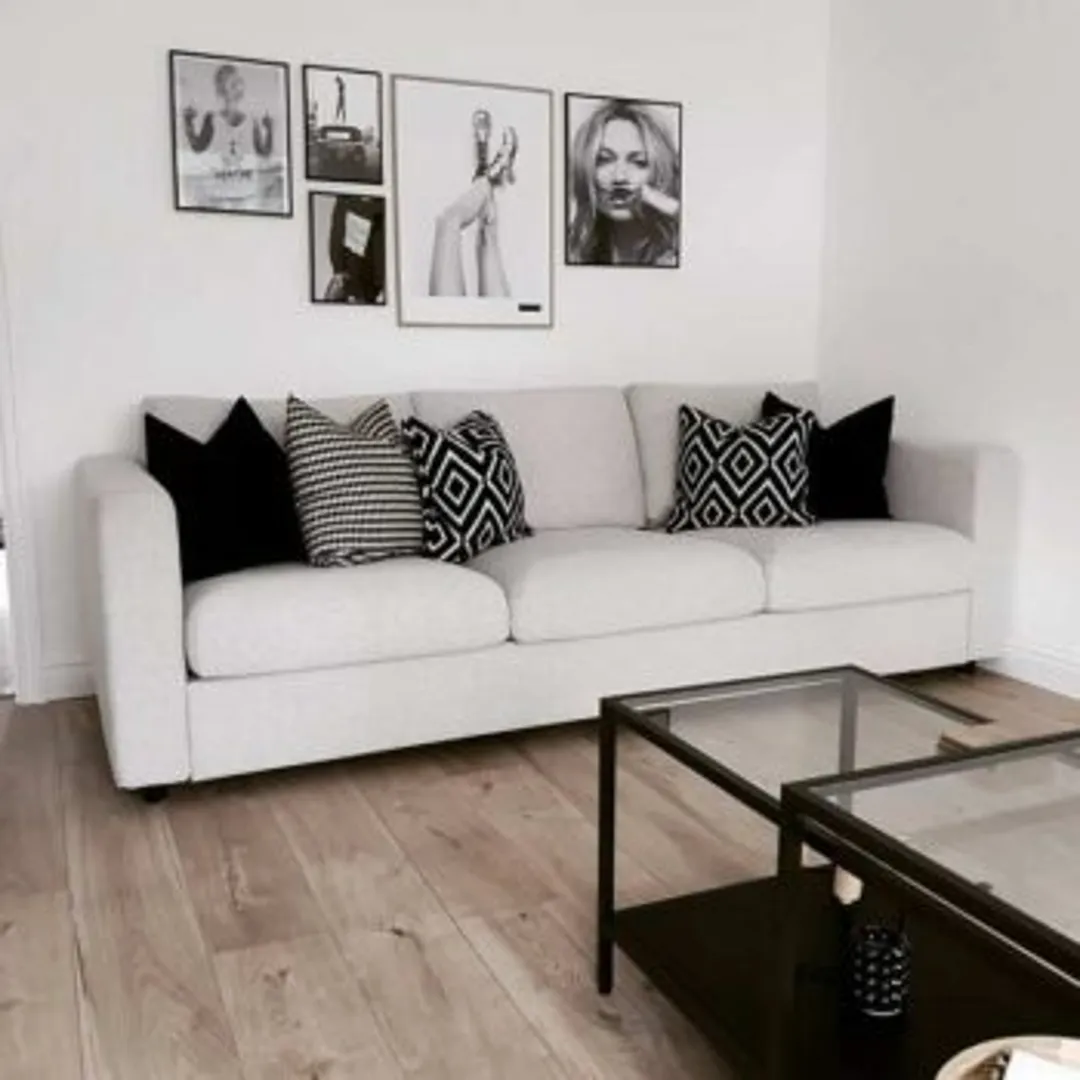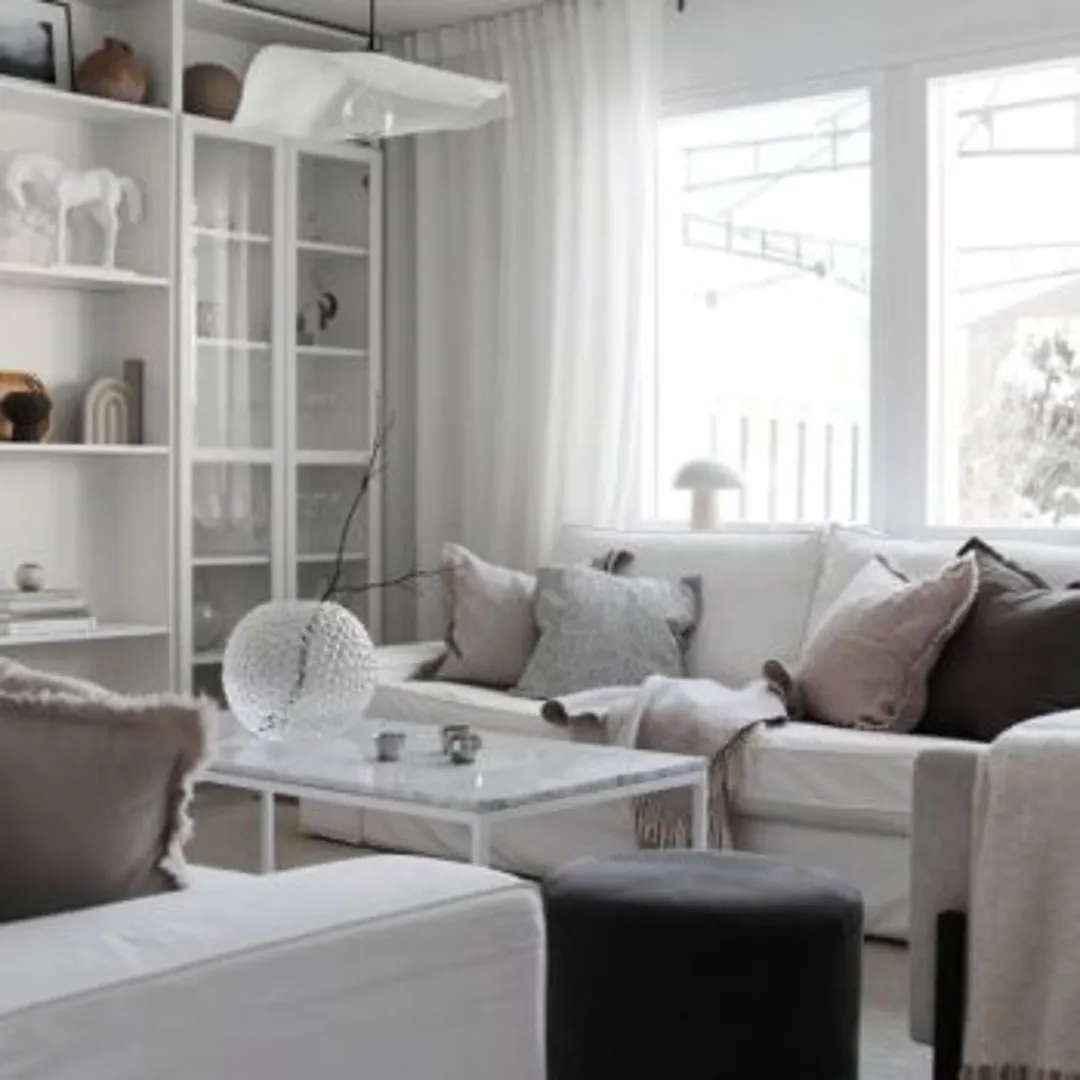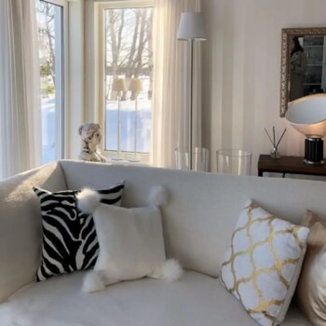 Хотите, чтобы ваша белая гостиная выглядела уютной, жилой и гостеприимной? Тогда следует выбирать диван, с разложенными на нем дополнительными акцентными подушками. У вас также должен быть удобный коврик, связывающий все в комнате воедино и создающий уютное пространство, где люди могут собраться и отдохнуть.
