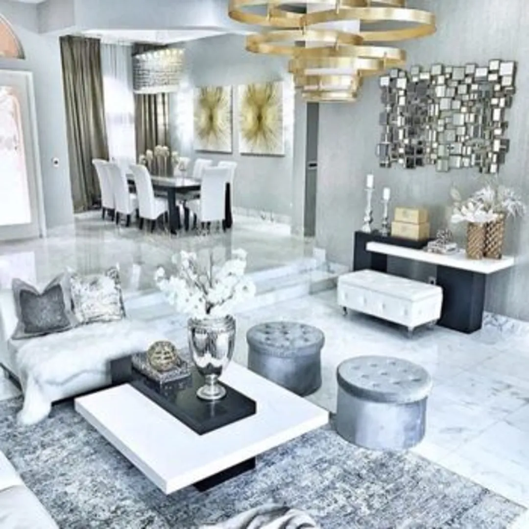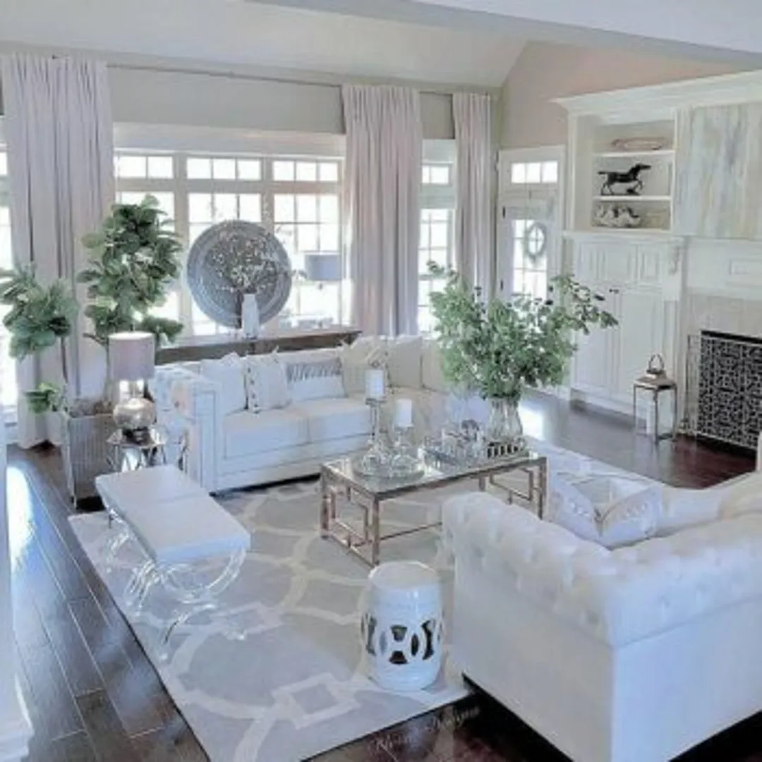 Что хорошего в выборе дизайна гостиной в белом цвете, так это то, что он подходит для самых разных тем оформления интерьера. Все, что вам нужно сделать, это начать с белой краски. Затем оформите свою гостиную: это может быть роскошная белая гостиная с хрустальной люстрой, занавесками от пола до потолка и позолоченной мебелью.