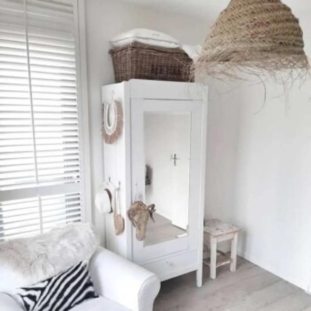 Ваша цель – создать пространство ручной и творческой работы, но при этом мягкое и расслабляющее. Продолжайте искать предметы сделанные руками и уникальные элементы интерьера, делая упор на нейтральные цвета и белый.