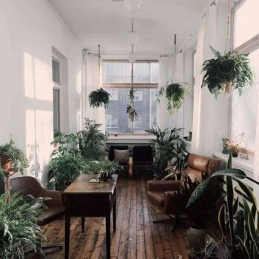 Вы можете противопоставить кабинетному саду элегантную современную мебель или выбрать более непринужденную эстетику. Используйте текстуру натурального дерева во всем пространстве для дополнительных цветов и текстуры. Белые стены помогут вашей зелени выделиться на фоне.