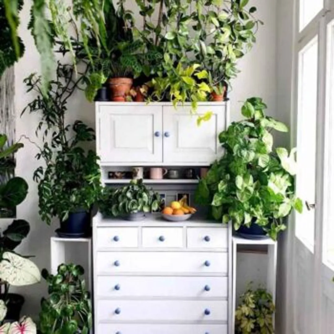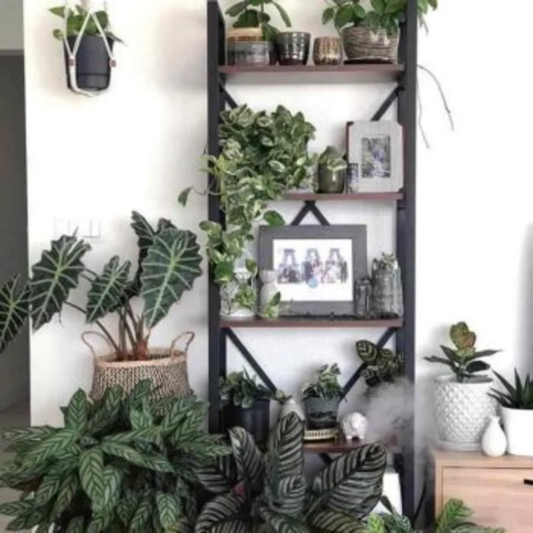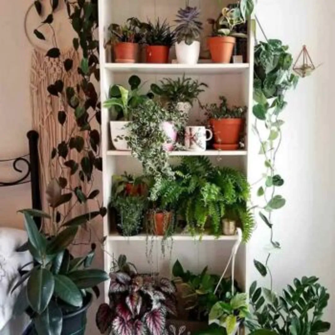 На рынке представлено множество специальных полок для растений, но вы можете превратить любой книжный шкаф или стеллаж в стильную витрину для растений. Выбирайте мебель с максимально возможным количеством уровней. Это позволит вам корректировать высоту растений и в полной мере использовать висячие листья и лозы.
