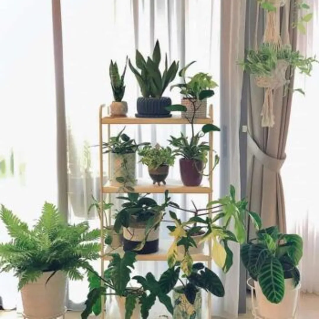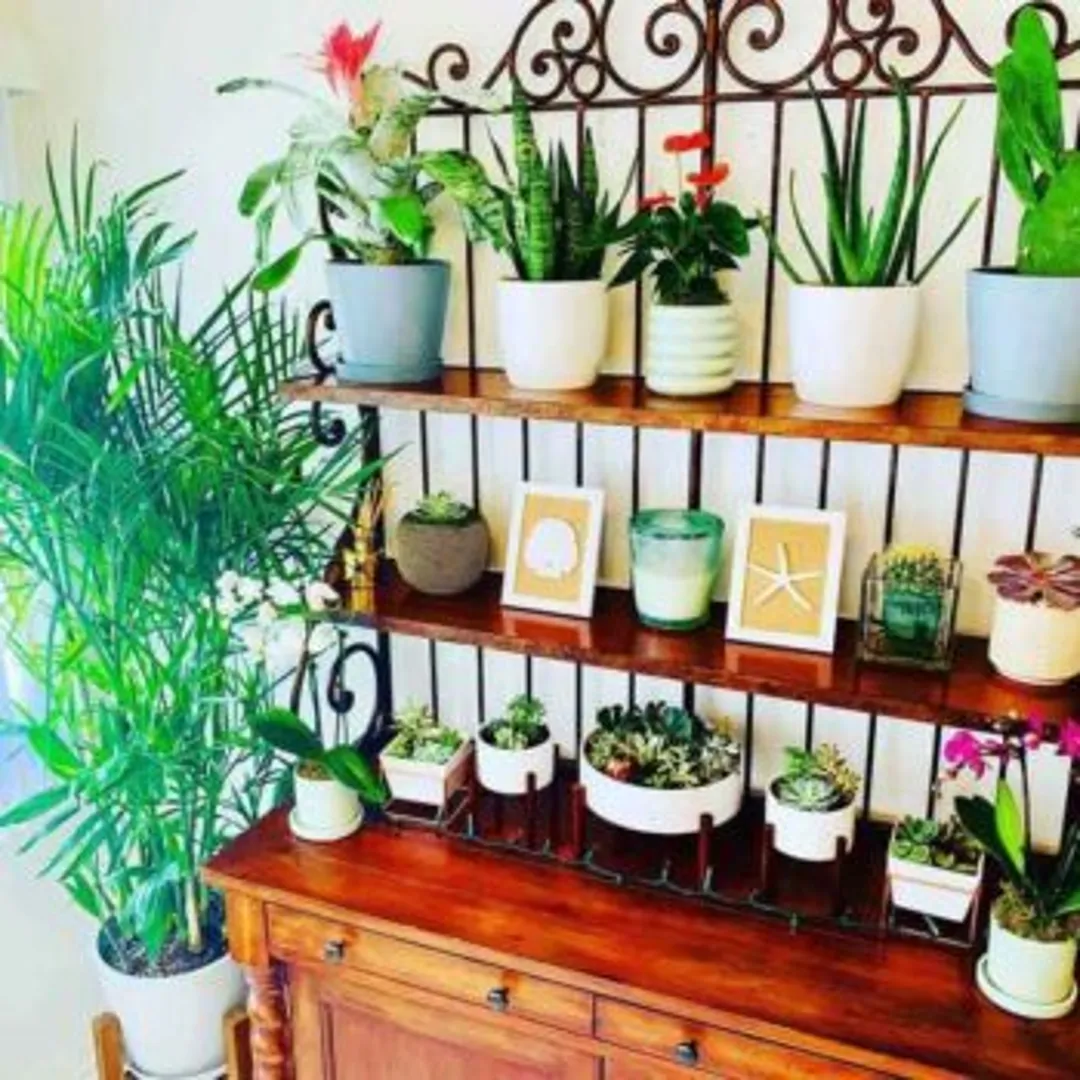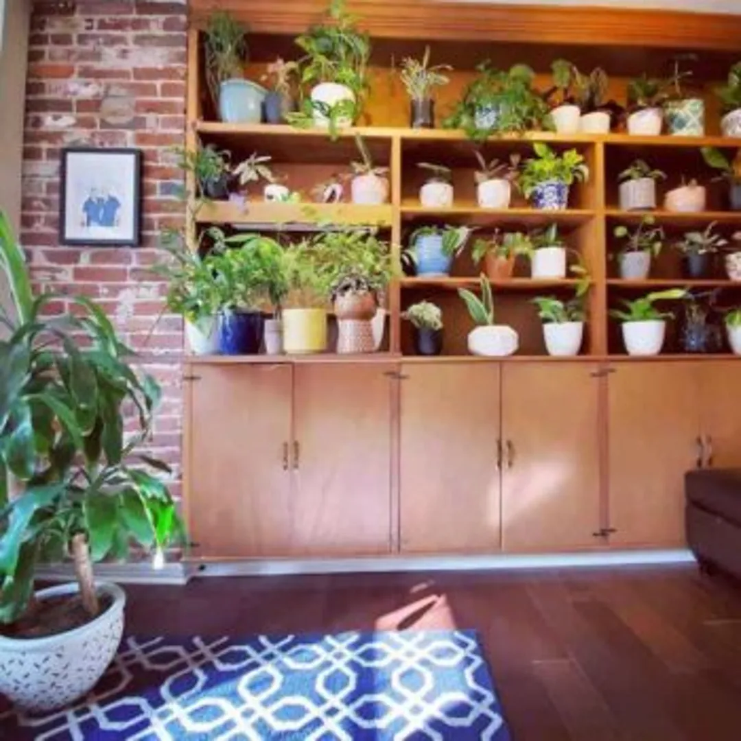 На рынке представлено множество специальных полок для растений, но вы можете превратить любой книжный шкаф или стеллаж в стильную витрину для растений. Выбирайте мебель с максимально возможным количеством уровней. Это позволит вам корректировать высоту растений и в полной мере использовать висячие листья и лозы.