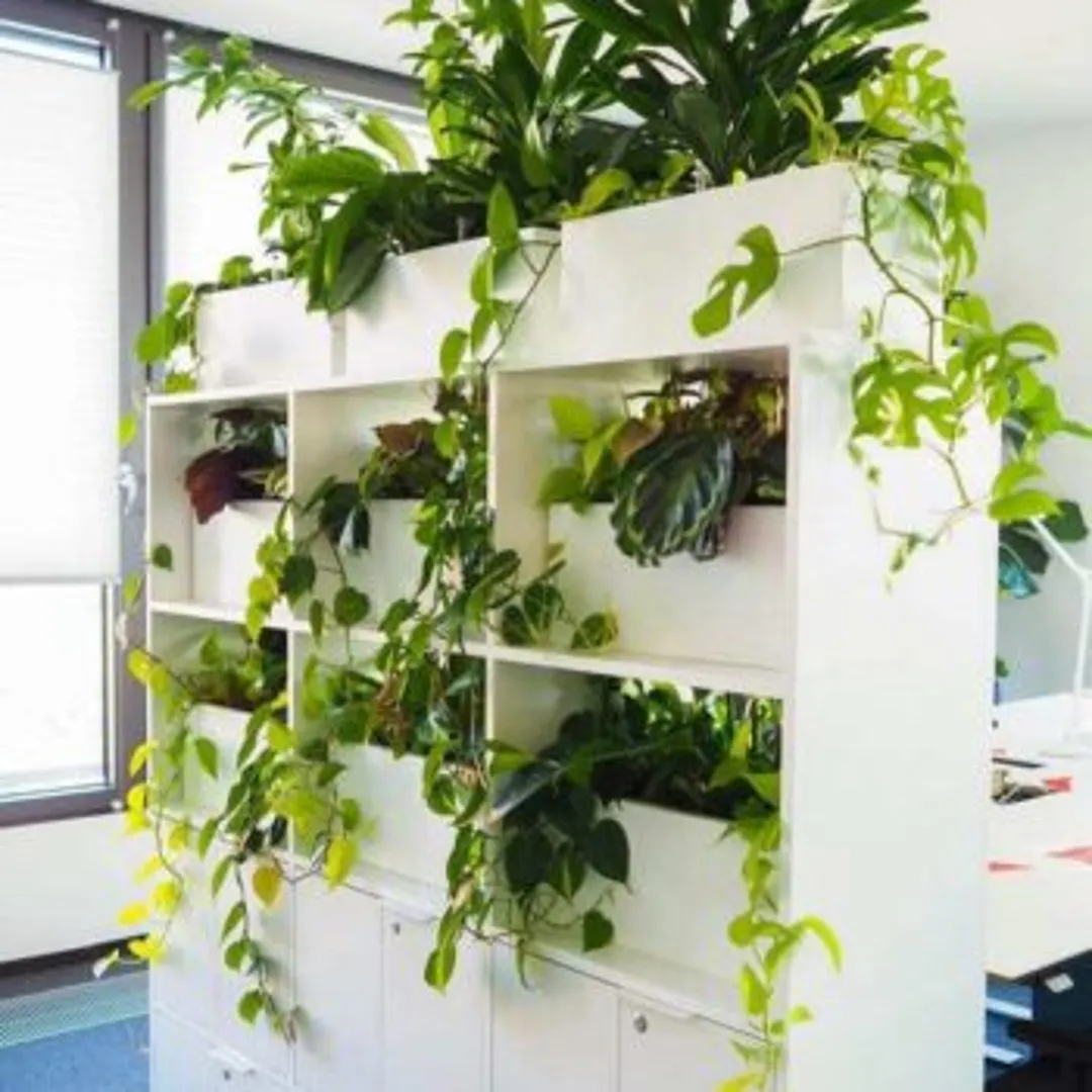 Не загромождайте рабочий стол слишком большим количеством горшечных растений. Хотя один или два небольших контейнера вполне подойдут, сосредоточьтесь на полках или подвесных корзинах для максимального освобождения пространства. Поместите большое растение, такое как фикус или сансевиерия, рядом со своим столом для фона из вертикальной листвы.