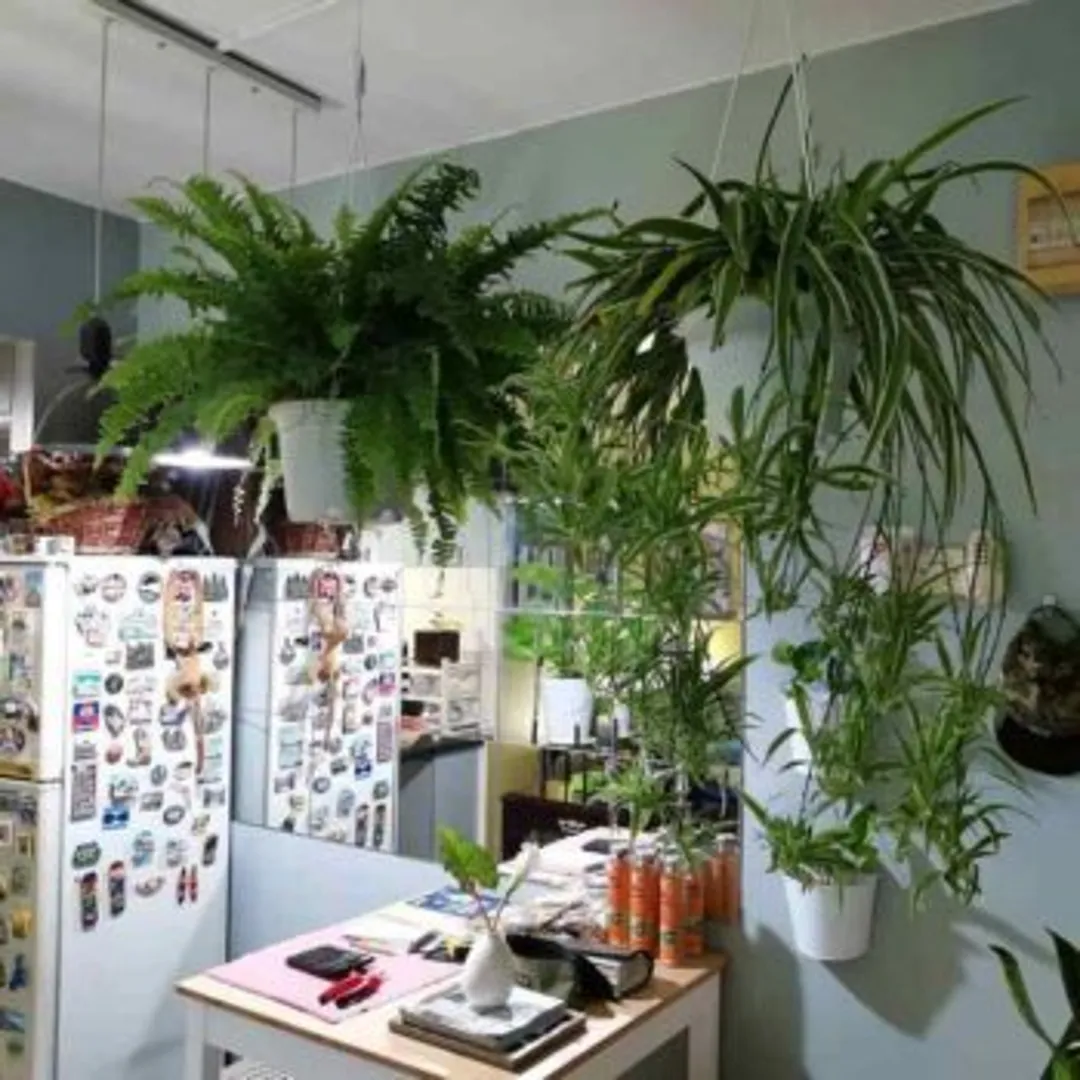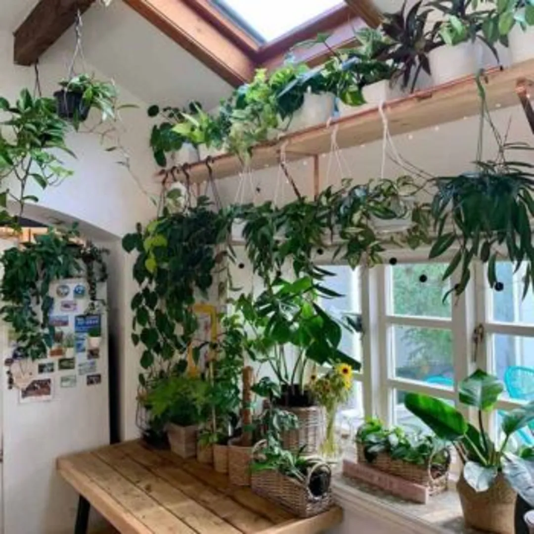 Скорее всего, у вас нет лишнего места на кухне и в обеденной зоне. Сосредоточьтесь на выращивании большого количества маленьких растений, а не нескольких больших. Вы можете разместить массу растений на навесных шкафах, не теряя при этом функционального пространства. Плавающие полки также будут отличным вариантом.