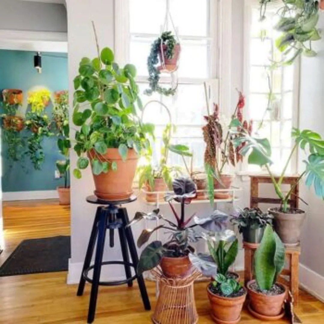 Для растений используйте подставки, тем самым задав единый стиль своим комнатным цветам. Подставки доступны во всех размерах и видах, вы можете их легко сочетать с остальным декором вашего дома. В качестве идей для развешивания растений ищите корзины, сделанные из интересных материалов или имеющие геометрические формы.