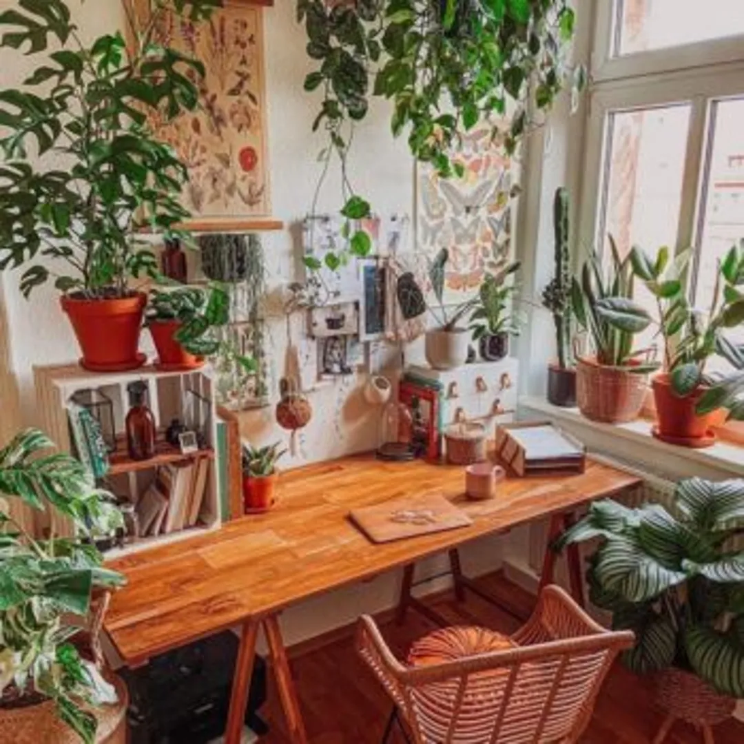 Комнатный сад – отличный способ улучшить интерьер вашего кабинета и поднять настроение, сохраняя при этом профессиональное пространство для встреч в Zoom или личных контактов с клиентами. Если вы часто делаете видеозвонки дома, не забудьте разместить часть своей коллекции растений за настольным креслом.