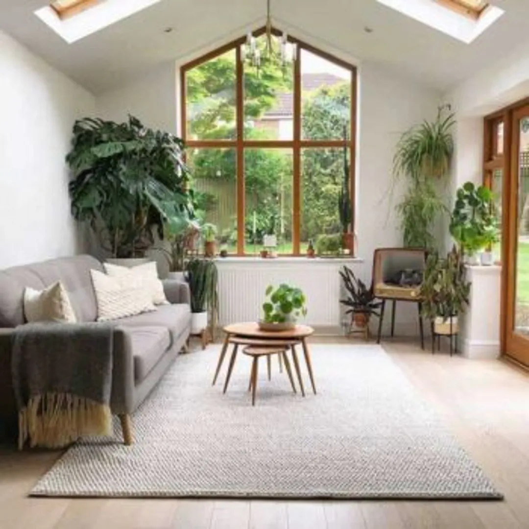 Решите, что является центром вашей гостиной – для многих это телевизор или камин – и создайте умный дизайн сада вокруг этого предмета. Используйте большие растения с пышной листвой для обрамления этого участка. Вы можете использовать меньшие по размеру, более структурированные растения в другом месте комнаты.