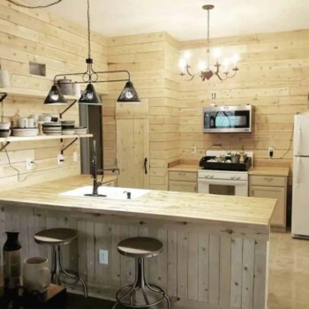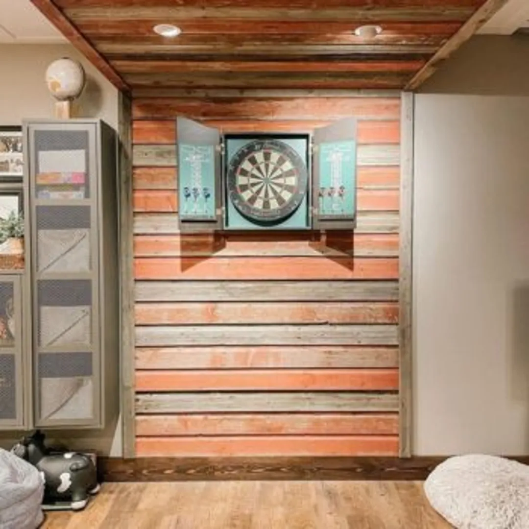 Если вы не готовы посвятить себя полностью деревенскому стилю, то деревянные панели – отличный альтернативный вариант. Они идеально подойдут для создания акцентной стены в вашем подвальном помещении.