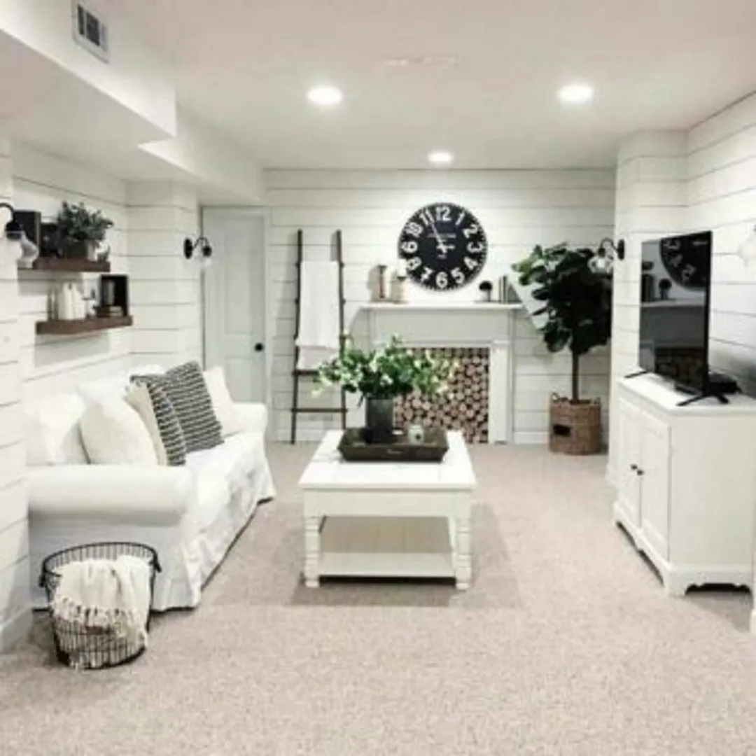 Белая обшивка стен поможет маленькому подвалу стать светлее и легче. А чтобы помещение не казалось мрачным и холодным, сочетайте его с теплым деревянным полом.