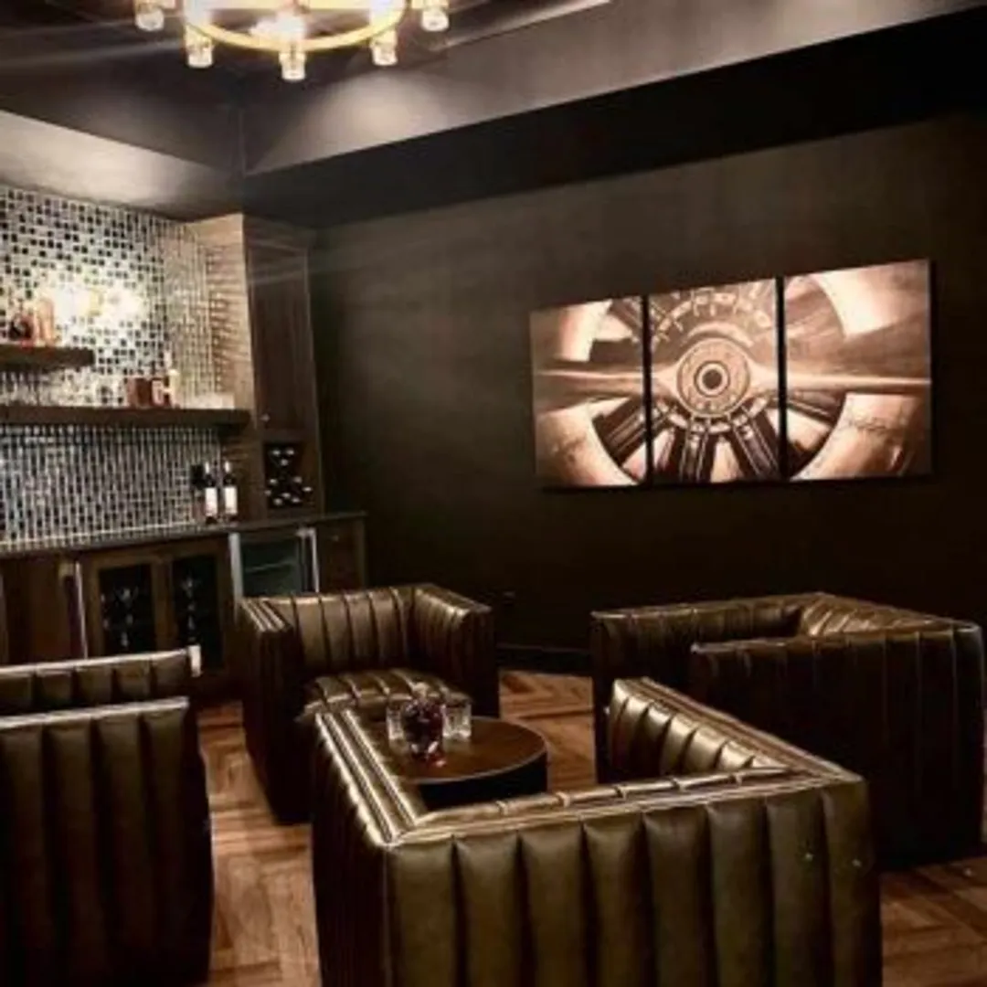 Вы также можете выкрасить все стены в черный цвет для создания изысканной атмосферы подвального бара. Или же можете создать берлогу в мужском стиле.