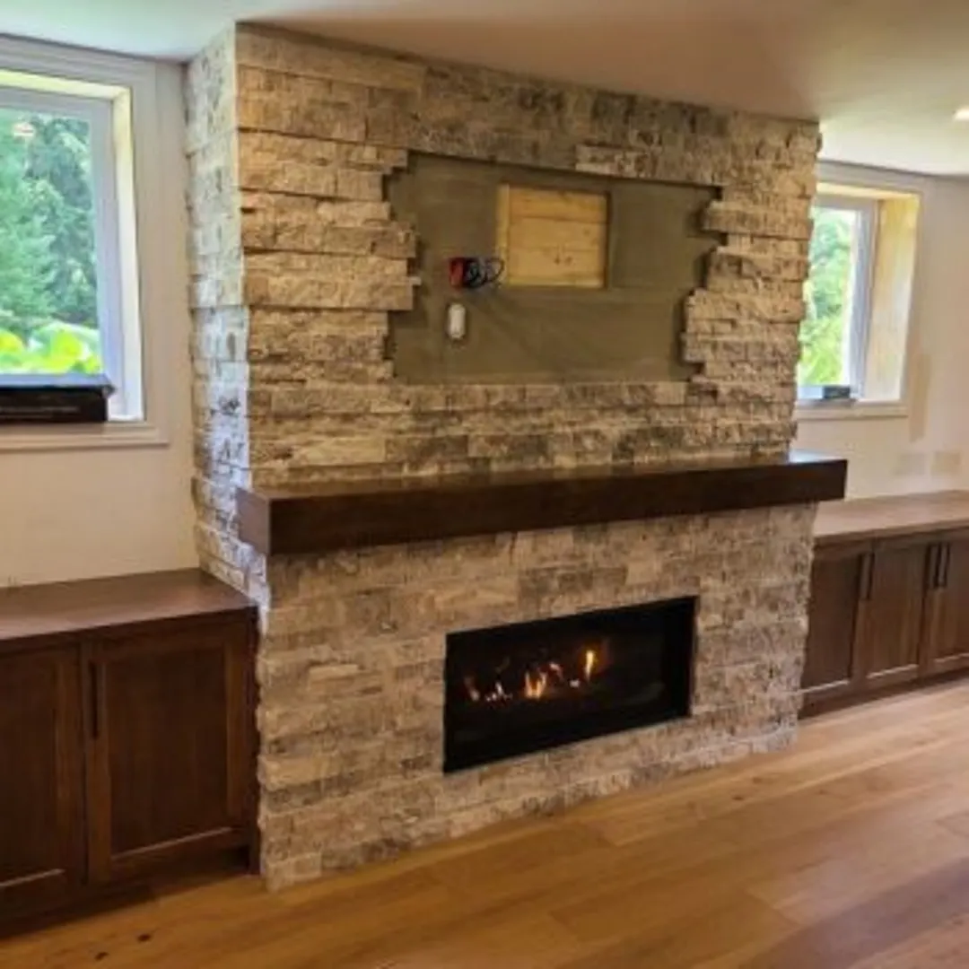Уложенный камень – это современный вид, придающий текстуру вашему подвалу. Он идеально подходит для отделки стены вашего помещения. Создайте акцентную стену. Закройте переднюю часть бара в подвале. Постройте полустену, разделяющую пространство на отдельные полезные зоны.