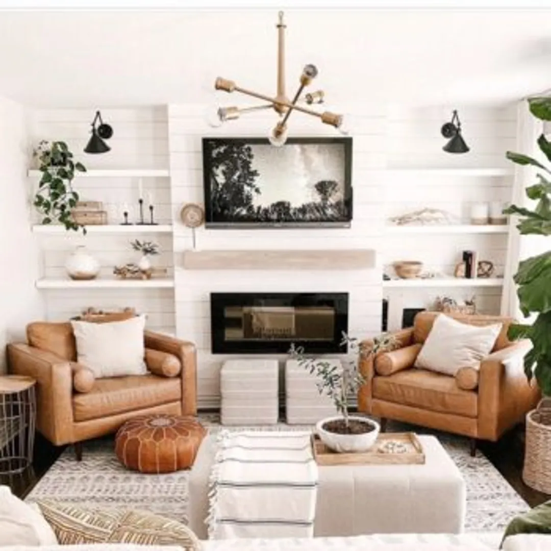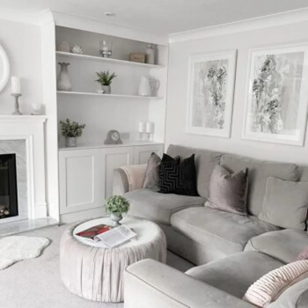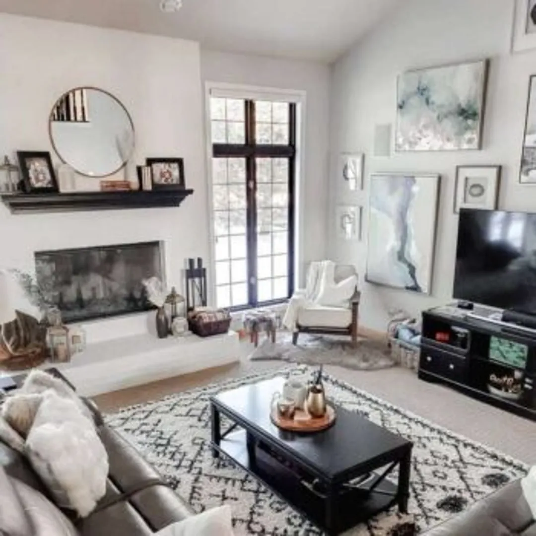 Каждая стена в вашей гостиной – это идеальный чистый холст, способный вместить ваши лучшие идеи для самостоятельного творчества. Идеи оформления стен должны соответствовать их размерам. Например, если у вас особенно большая стена, как в двухэтажной гостиной, заполните пространство серией масштабных скоординированных предметов. Небольшую стену, например, над камином, украсьте миниатюрными картинами или зеркалами.