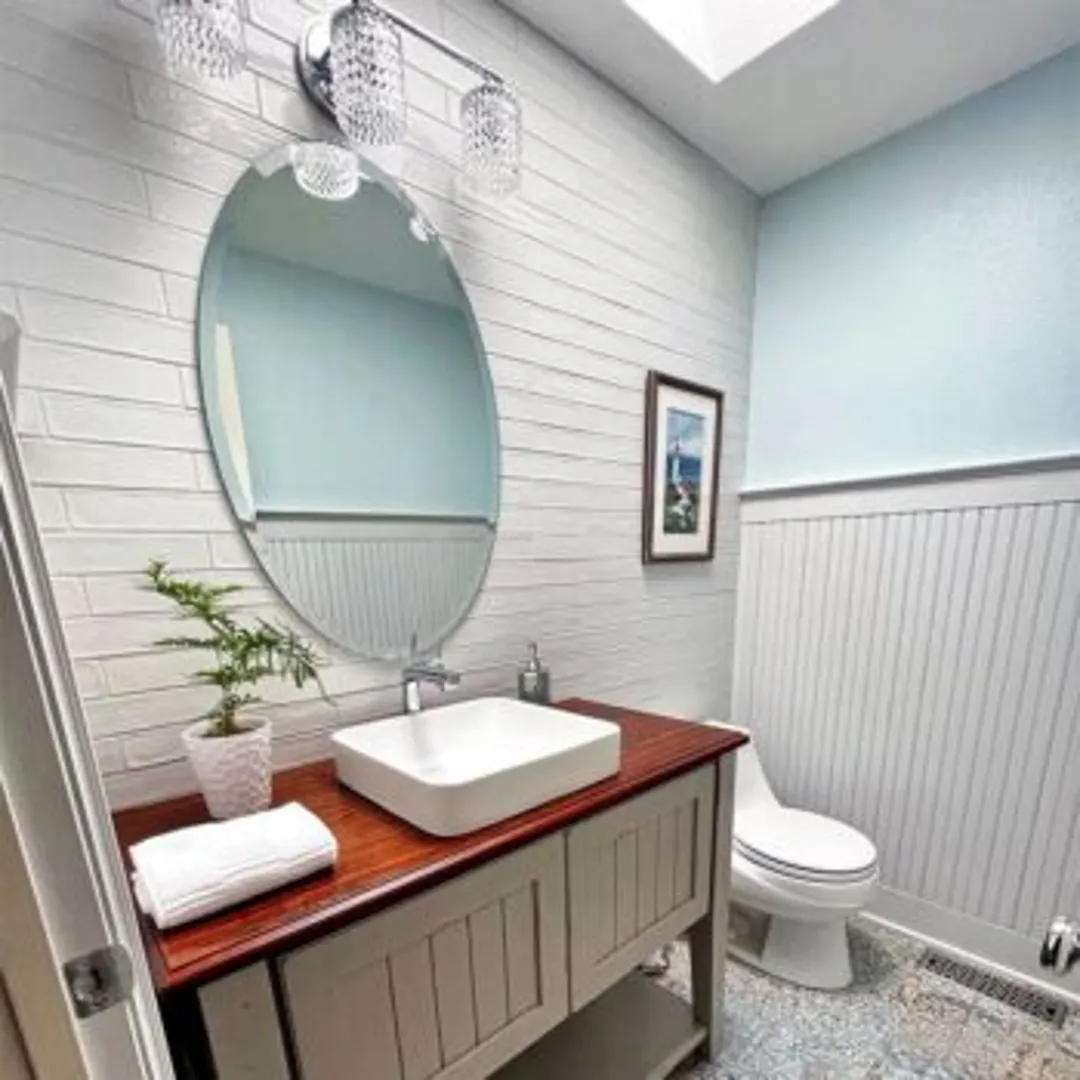 В ванной комнате, как правило, небольшие стены и они идеально подходят для пробной креативной техники покраски или под поклейку изысканных обоев. Естественно, при выборе идей настенного искусства своими руками для ванной комнаты следует помнить о влажности. Картины в рамке под стеклом могут начать морщиться уже после нескольких принятий душа, поэтому постарайтесь выбирать правильные и безопасные варианты оформления стен, способные выдержать влажную среду.