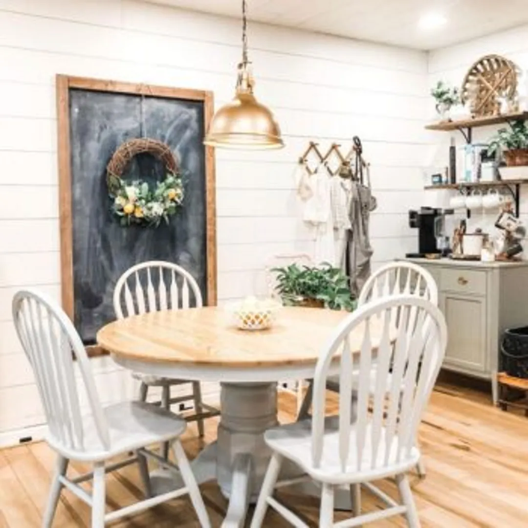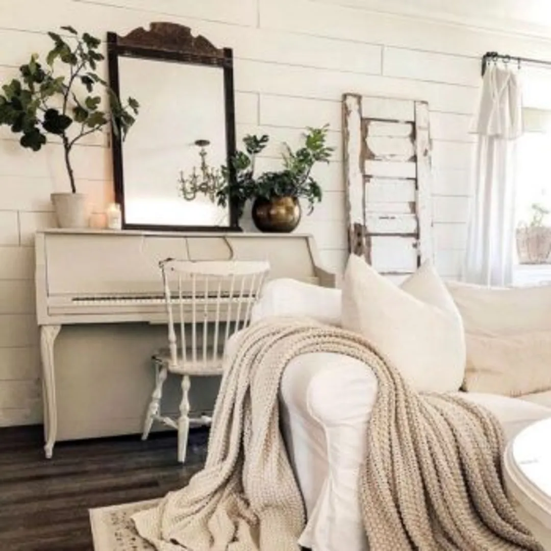 Винтажные таблички и вдохновляющие цитаты хорошо вписываются в любую галерейную стену в стиле фермерского дома. Повесьте ботанические обои или образец ткани в деревянную рамку из-под фотографий для быстрого проекта в жанре «Своими руками» из разряда «фермерский дом». Старые деревянные ящики и винтажные корзины представляют собой великолепные настенные акценты в стиле фермерского дома. Покрасьте их или оставьте нетронутыми, и используйте для хранения маленьких вазочек с цветами, небольших книг и других декоративных предметов.