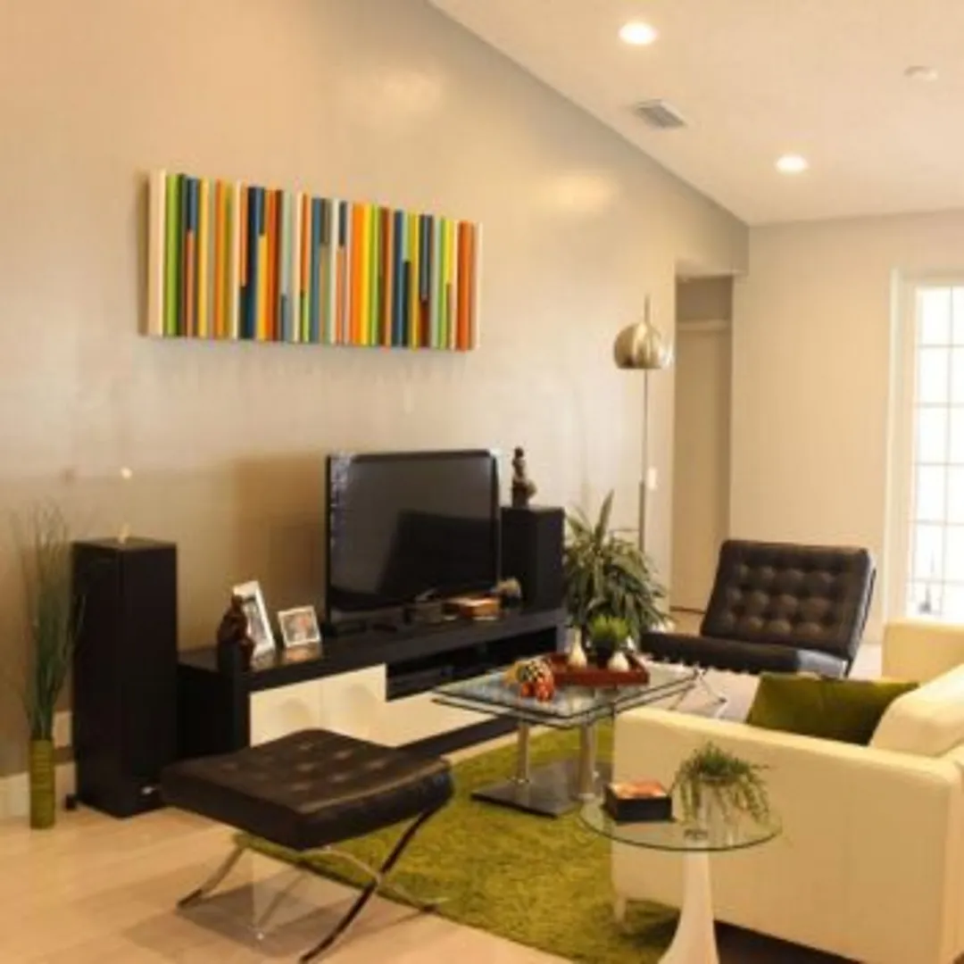 Еще одна отличная идея из настенного искусства своими руками для нехудожников – покрасить палочки от мороженого или небольшие палочки из дерева в четыре-пять цветов. Разложите их на куске дерева или плотного картона и приклейте. Вставьте их в рамку, чтобы получился красочный настенный панно, подходящий для любой комнаты.