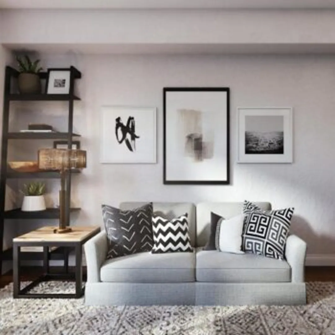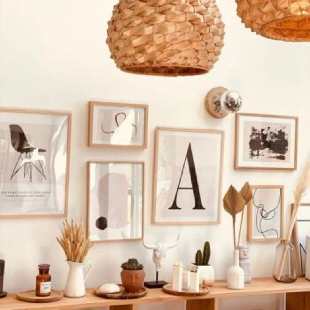Выберите одну большую картину для размещения на самой большой стене комнаты и дополните ее светильниками бра, подвесными плантаторами и/или зеркальной плиткой в рамке. Сделайте или приобретите рисунки, сочетающиеся между собой, и разместите их вместе для создания впечатляющей галерейной стены.