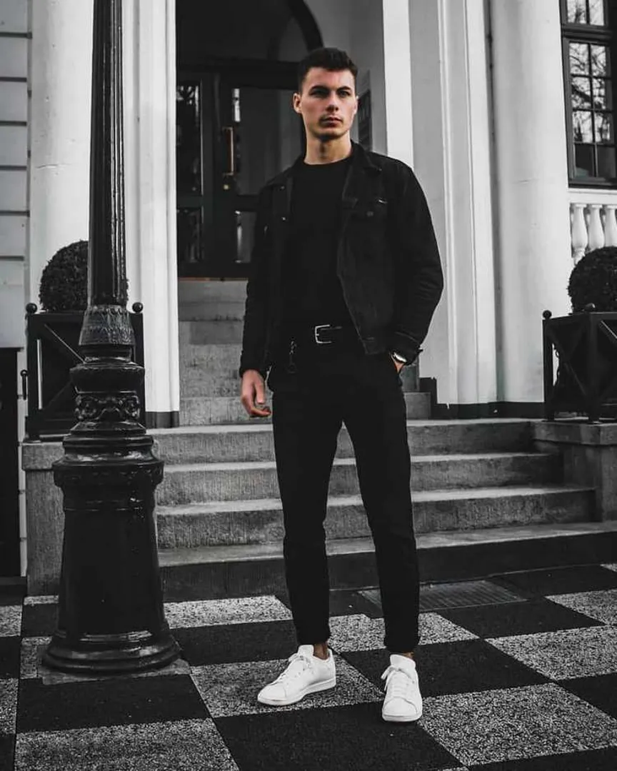 Если вы хотите почувствовать себя главным героем из Матрицы, тотально облачитесь в черный. Такой наряд покажется окружающим шикарным и формальным. Вы легко впишитесь в толпу. Конечно, вы также можете носить джинсовую куртку более светлого оттенка, но в этом случае она будет лучше смотреться с легкой обувью, например, с белыми кроссовками. На верх тоже лучше надеть что-то светлое или лавандовое.