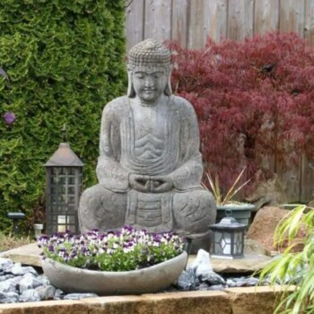 С эстетикой сада дзен, какой мы ее сегодня знаем, хорошо сочетается декор сада камней. Использовать для освещения садовой дорожки лучше фонарь, сделанный из камня, а не из металла или пластика. Фонтаны, купальни для птиц, декоративные скульптуры – тоже отличные варианты.